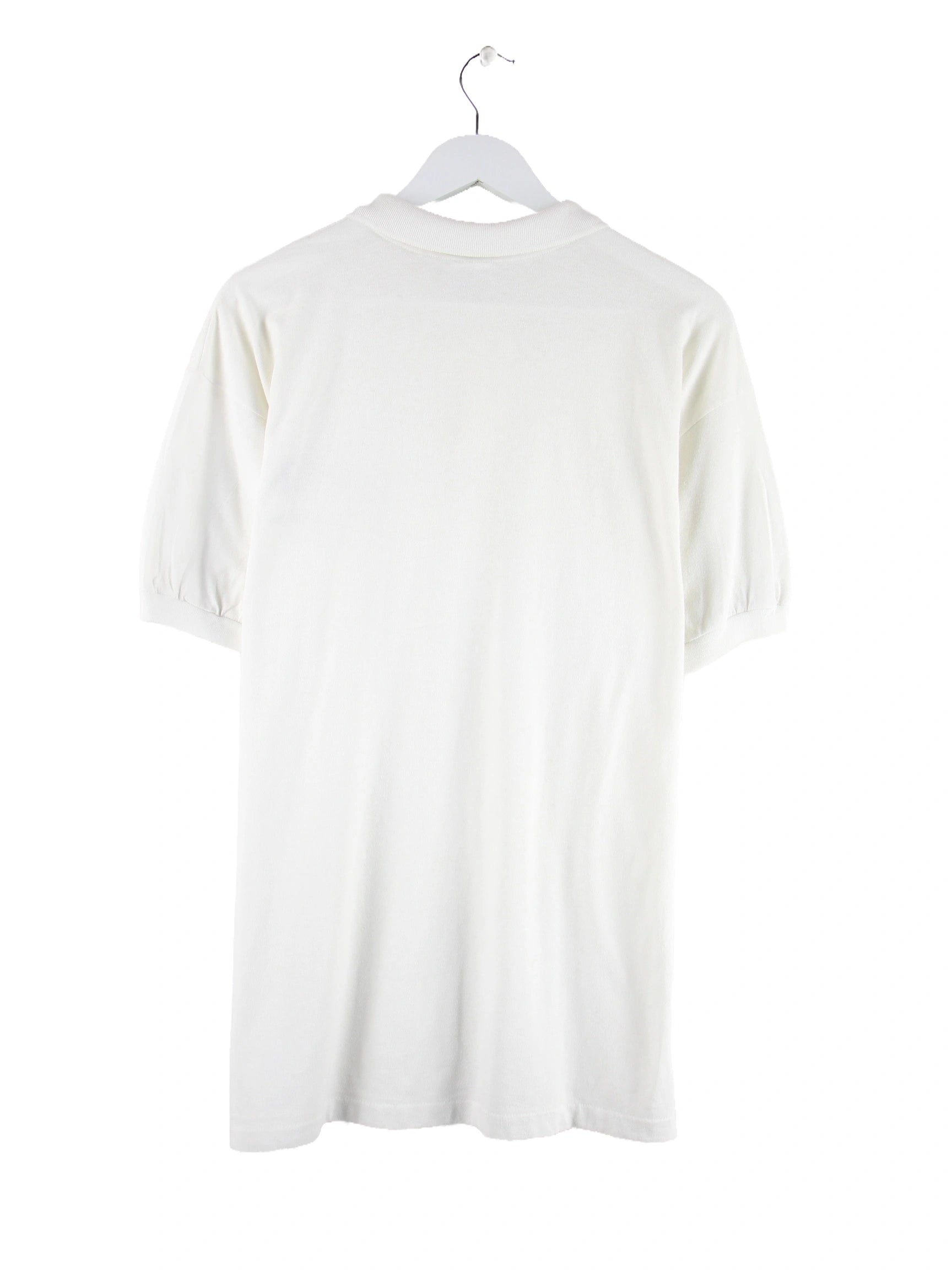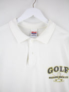 Weißes Poloshirt vom Label Anvil aus den 90'ern in Größe XL. Es ist aus Baumwolle gefertigt und in gutem Zustand in Stock. Mit seltenem Golf Print.