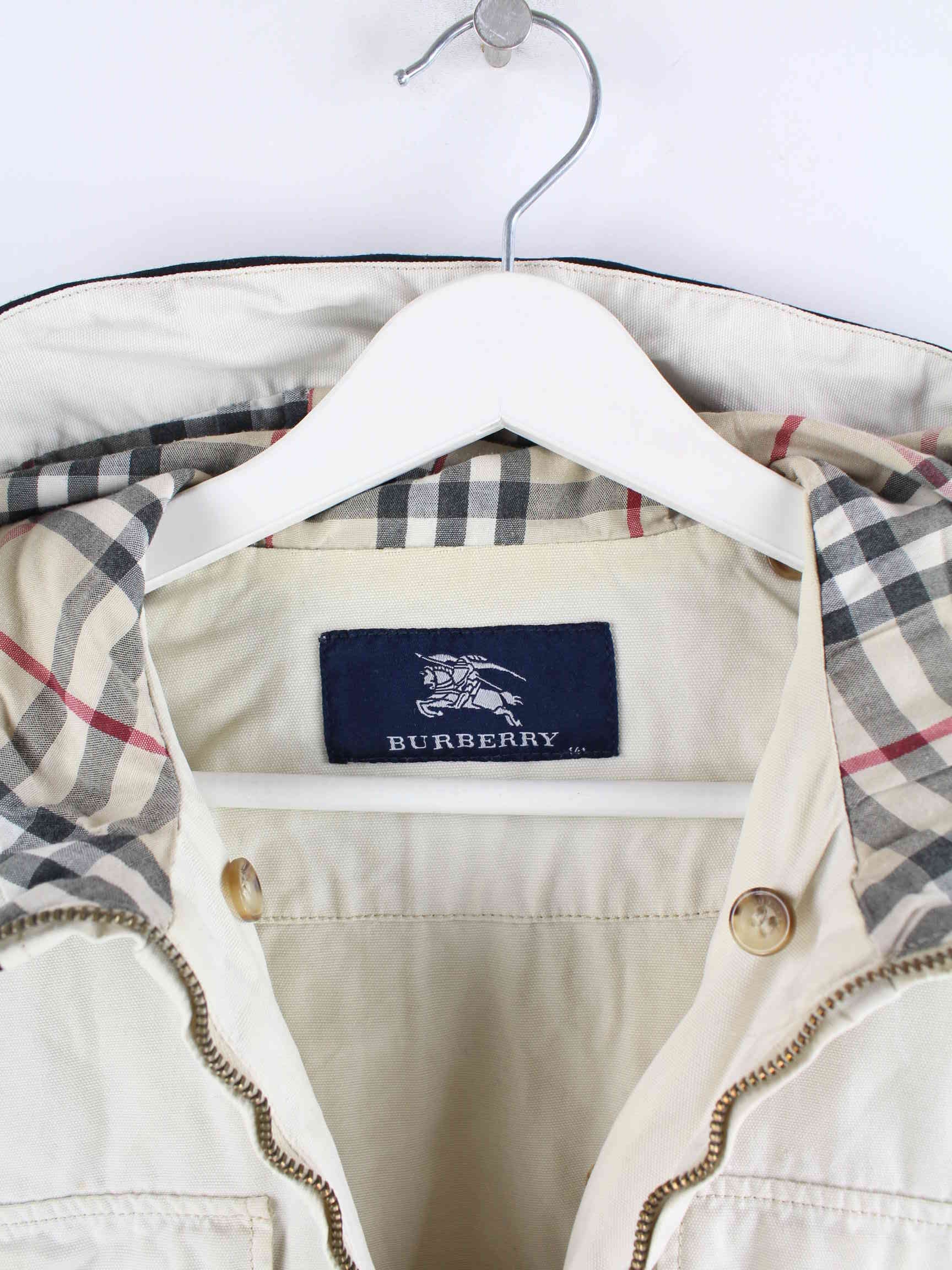 Lightweight jacket from the Burberry brand in size XS. It is made from a cotton blend and is stocked in beige.