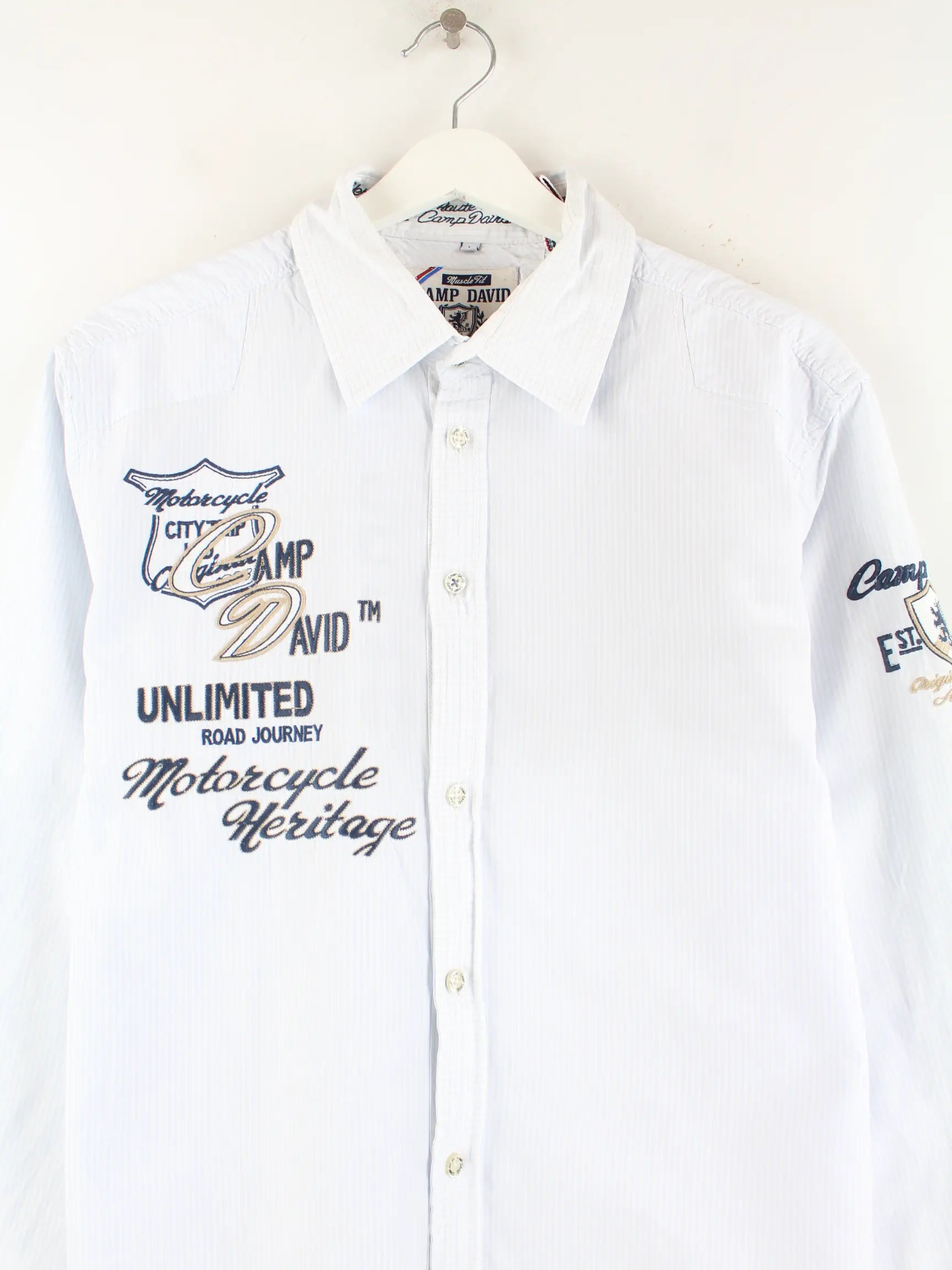 Freizeit Hemd vom Brand Camp David mit Stick in Größe L. Es ist aus Baumwolle und in Blau auf Lager.