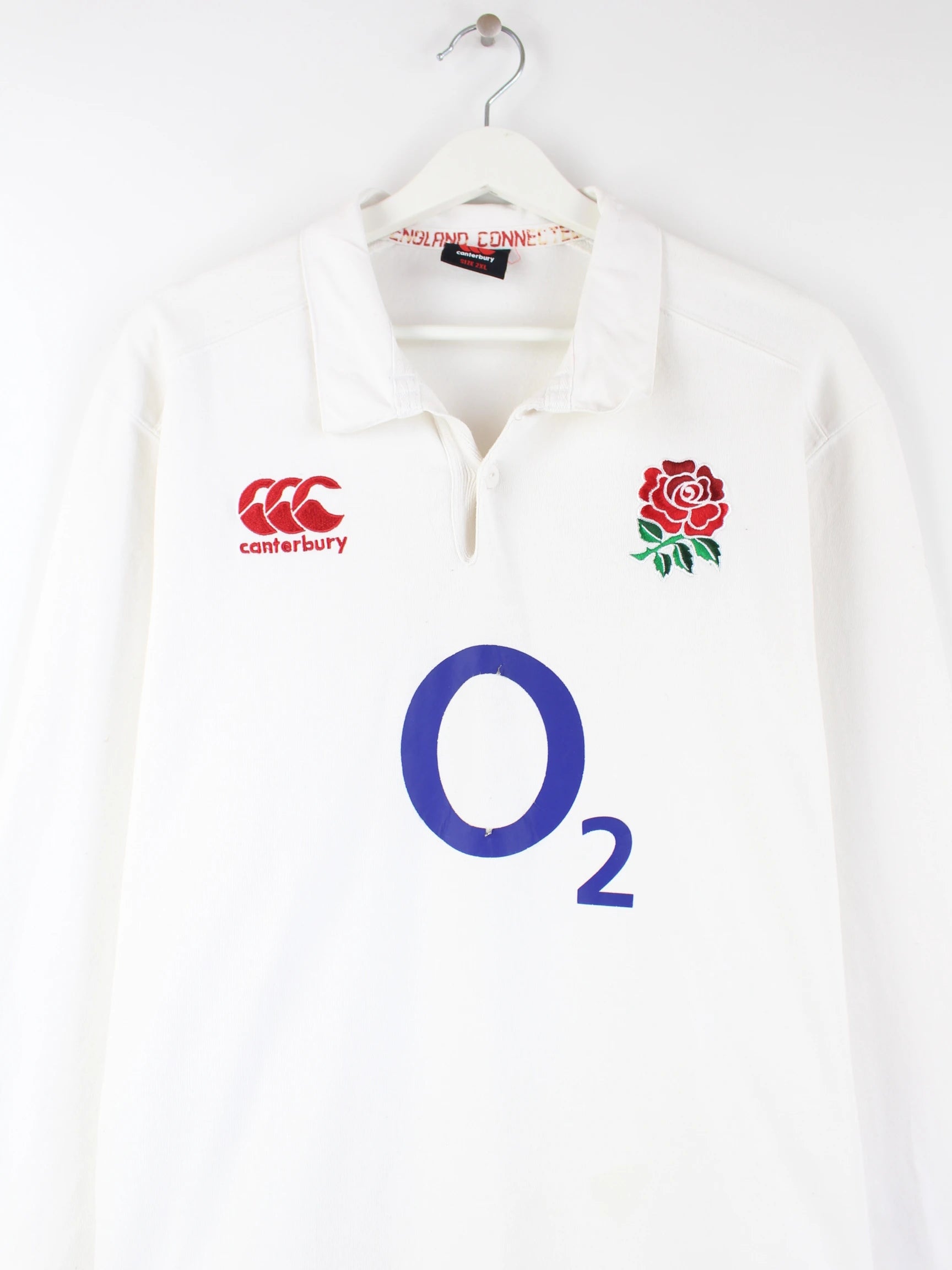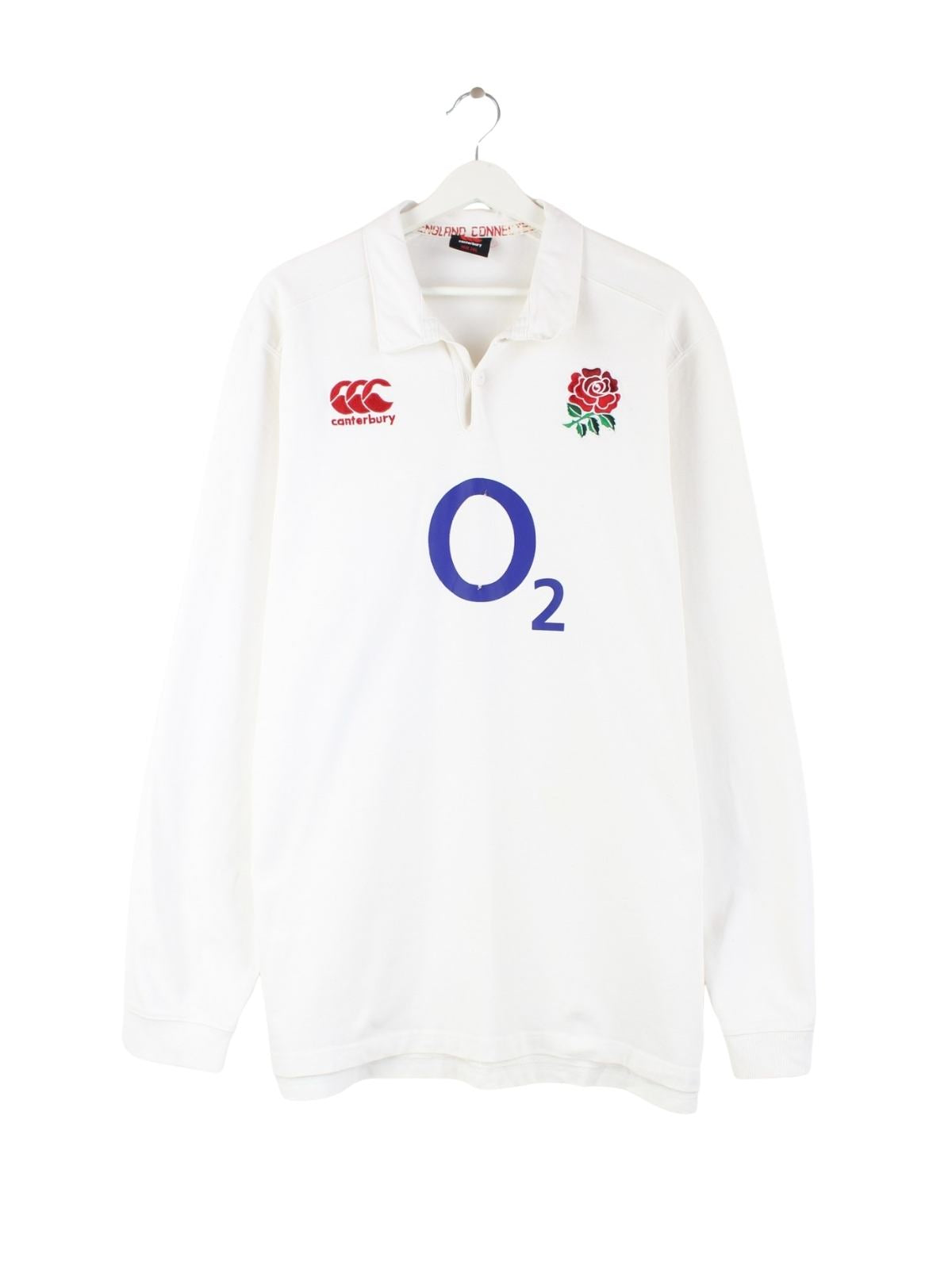 Rose Bowl Rugby Langarm Poloshirt aus dem Hause Canterbury in Größe XXL. Es ist aus Baumwolle und in Weiß zu bekommen.