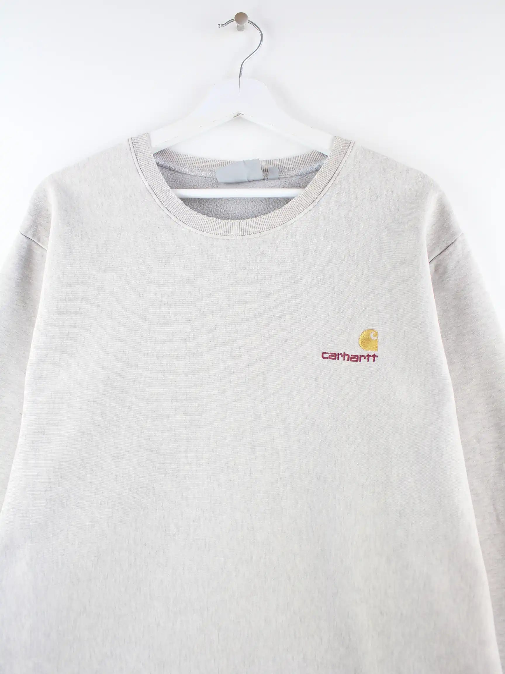 Grauer Sweater des Labels Carhartt in Größe XL. Er ist aus einer Baumwollmischung hergestellt. Den Zustand würden wir als 'In Ordnung' bezeichnen (vergl. Bilder).