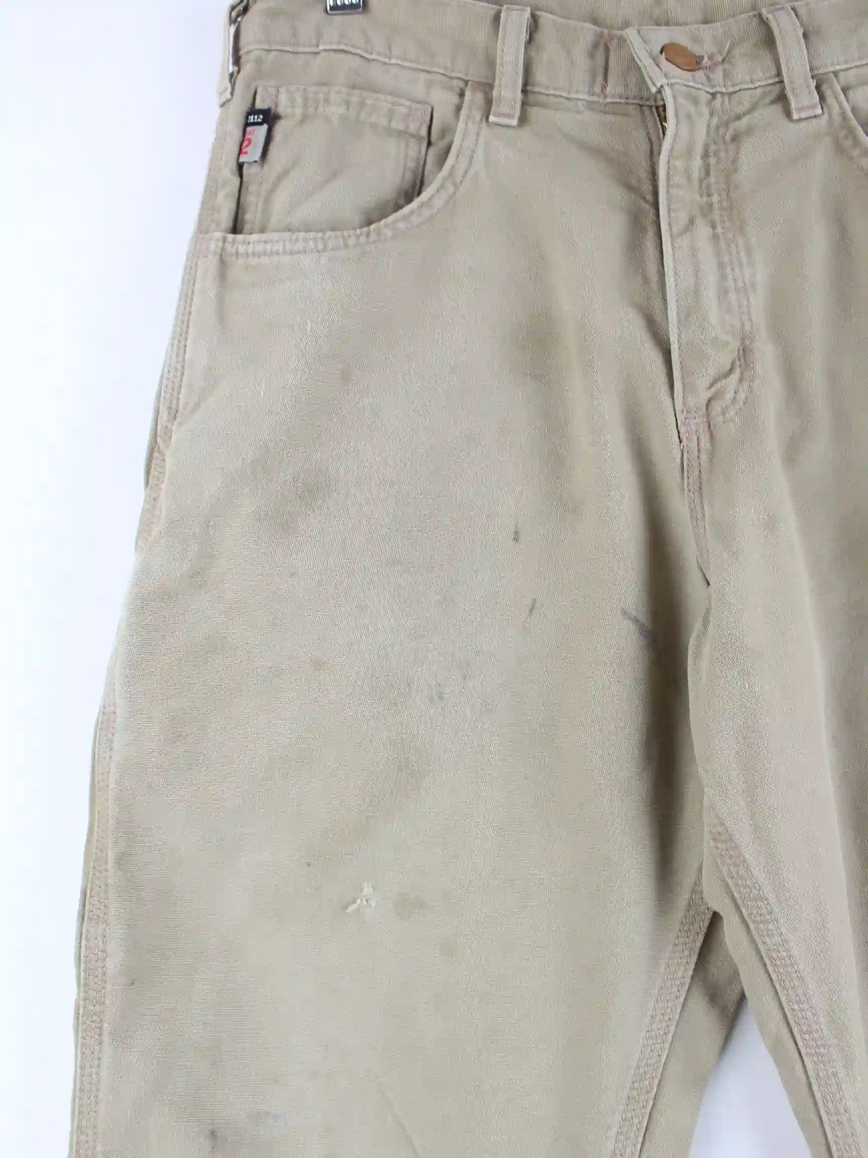 Beige Distressed Carpenter Jeans der Marke Carhartt in W32 x L30 . Den Zustand würden wir als 'In Ordnung' bezeichnen (vergl. Bilder).