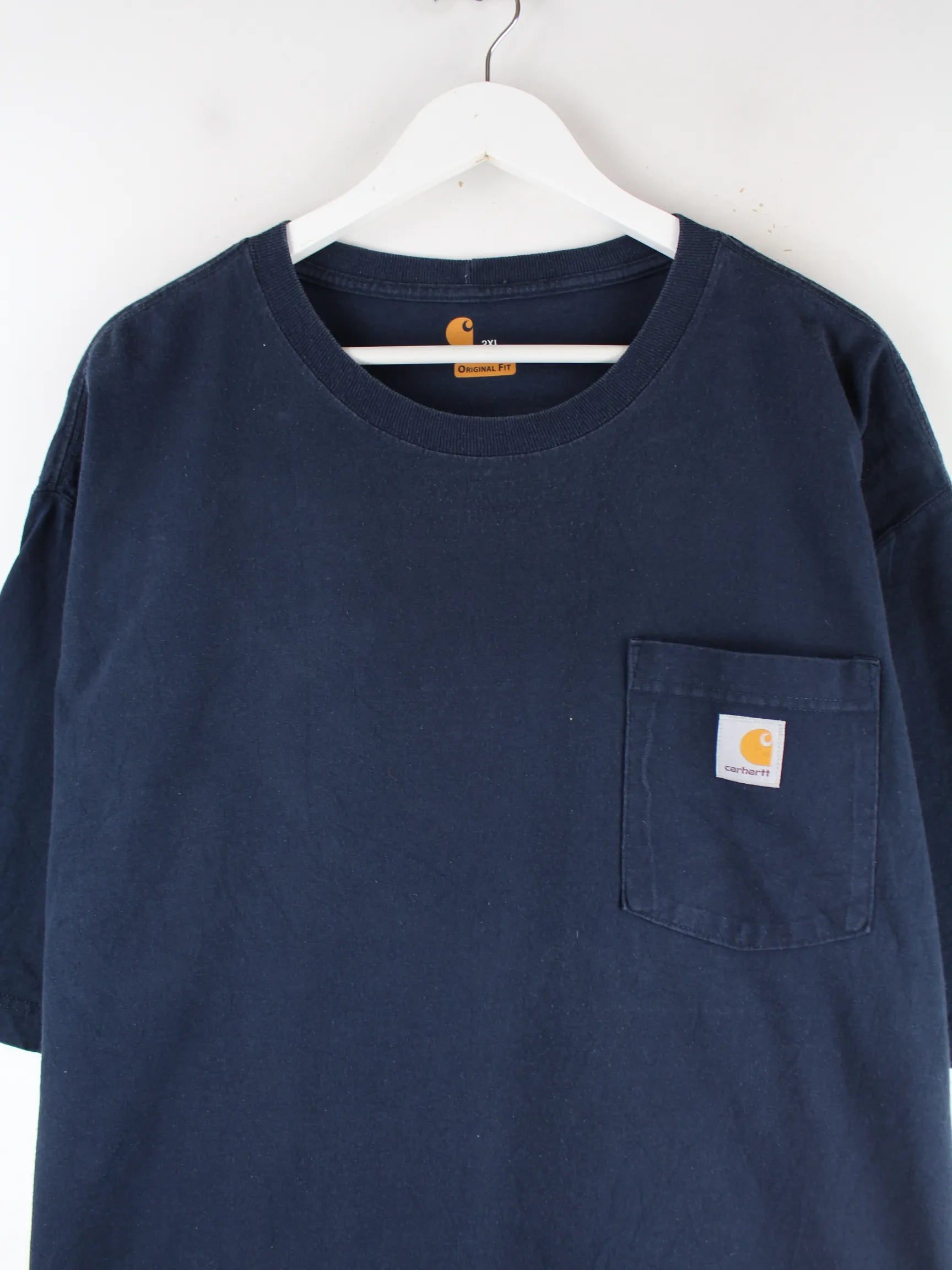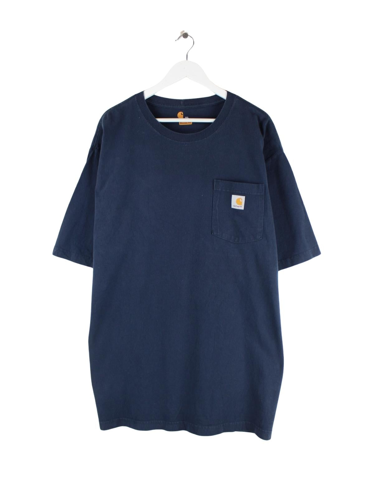 Blaues T-Shirt der Marke Carhartt in Größe XXL. Es ist aus Baumwolle und in gutem Zustand vorrätig. Mit schickem Pocket Print.