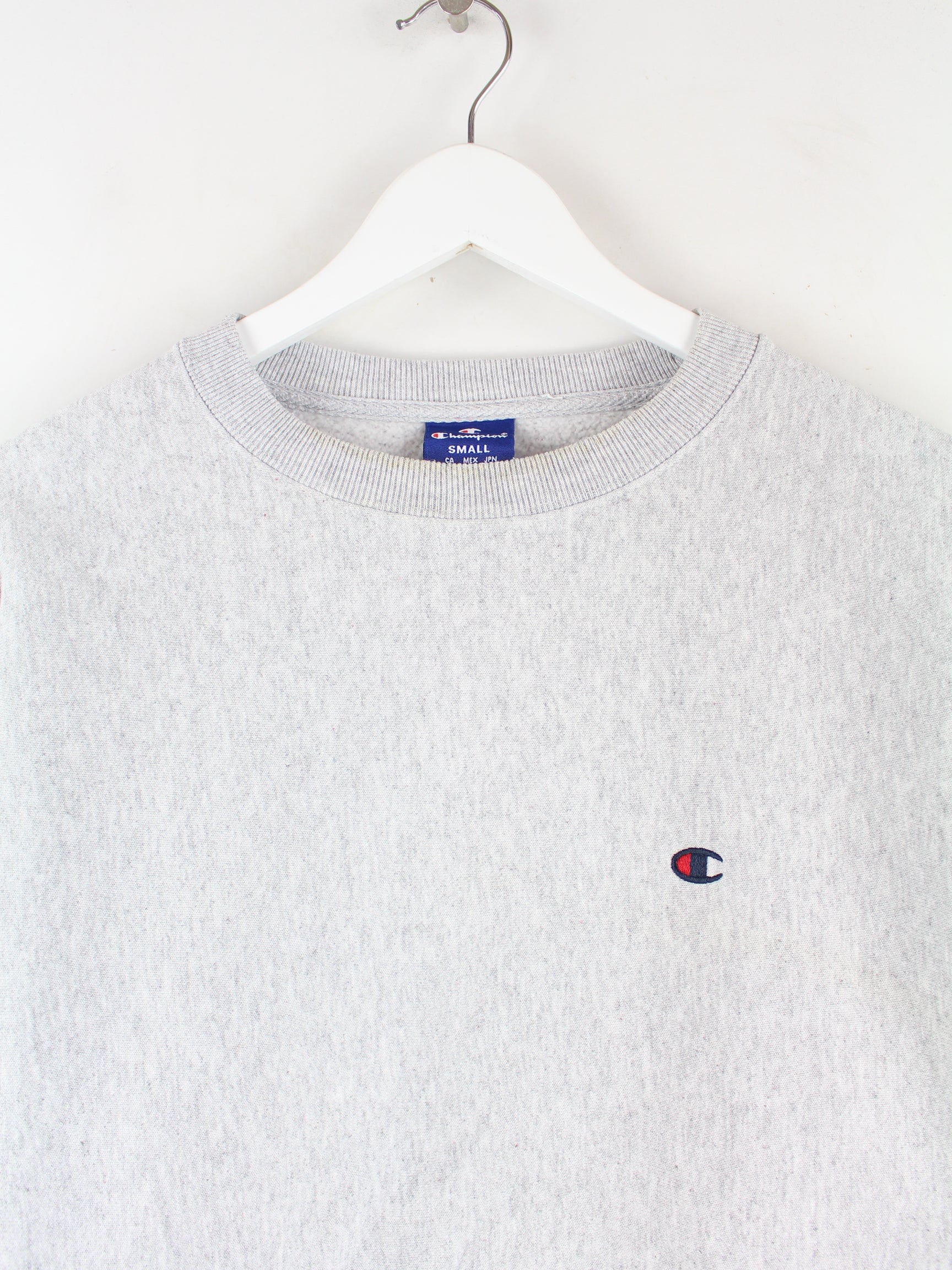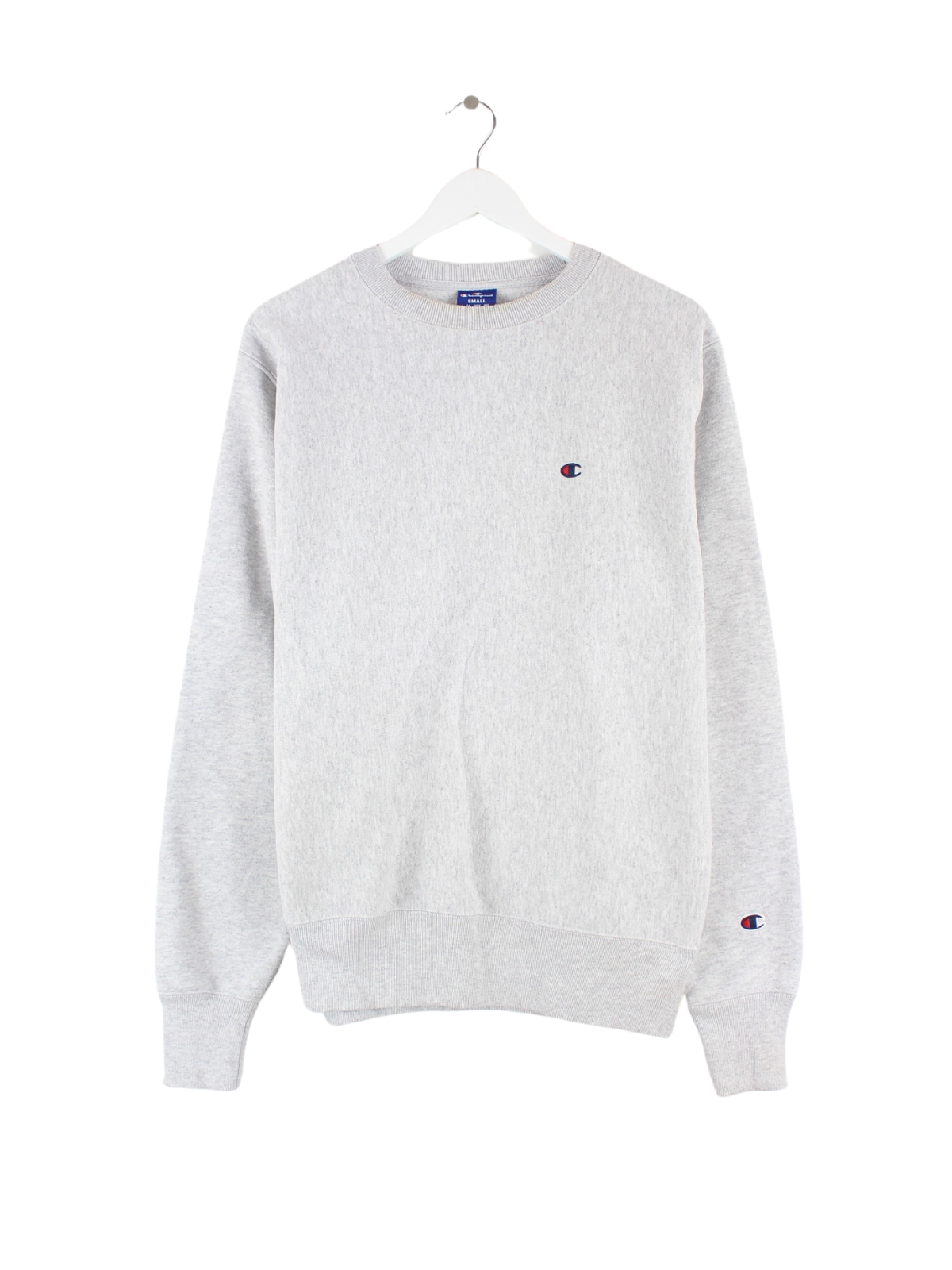 Grey sweater from the label Champion in size S. It is made of a cotton blend and is in good condition.