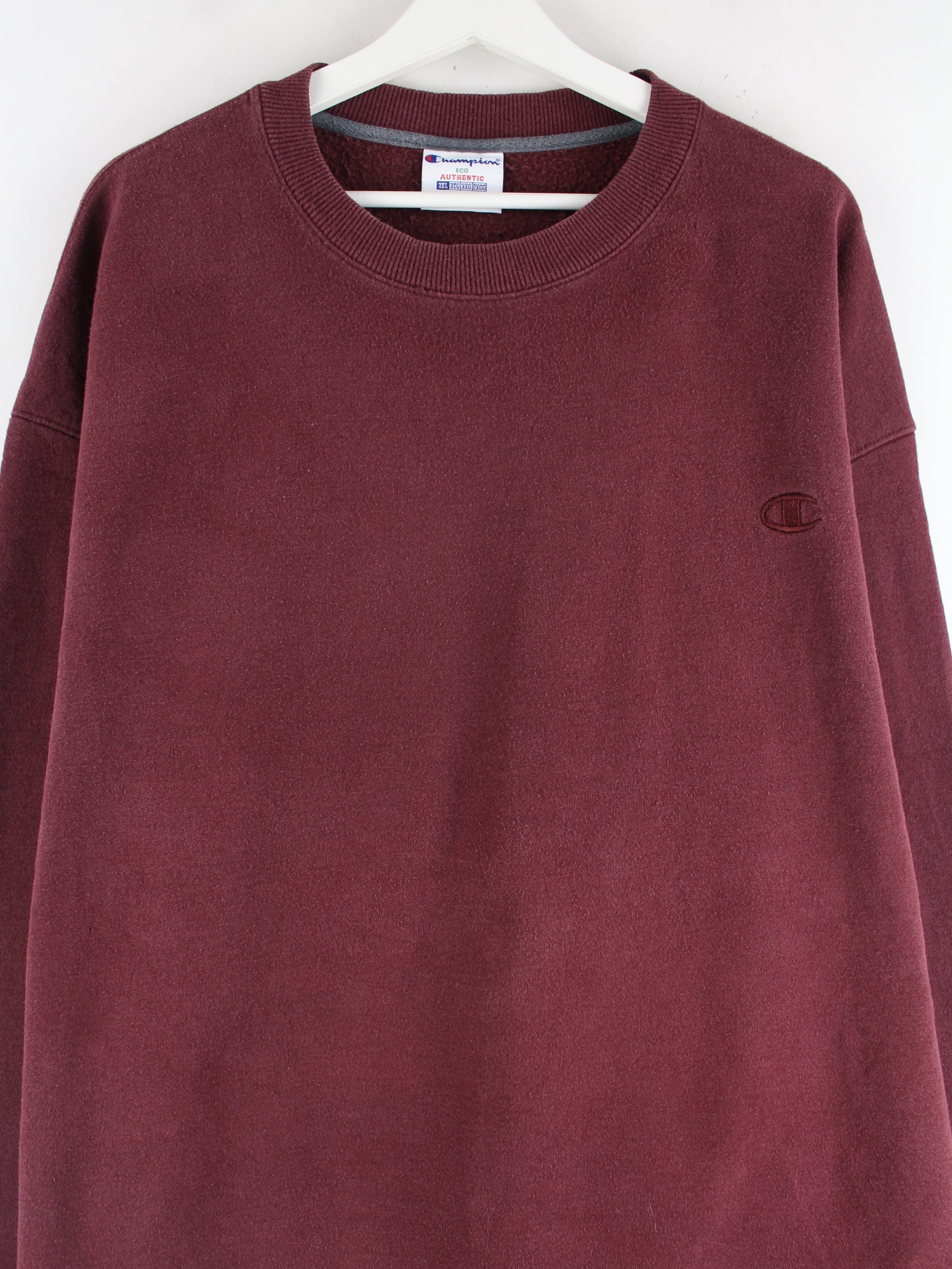 Sweater aus dem Hause Champion in Größe 3XL. Er ist aus einer Baumwollmischung angefertigt und in Rot im Bestand.