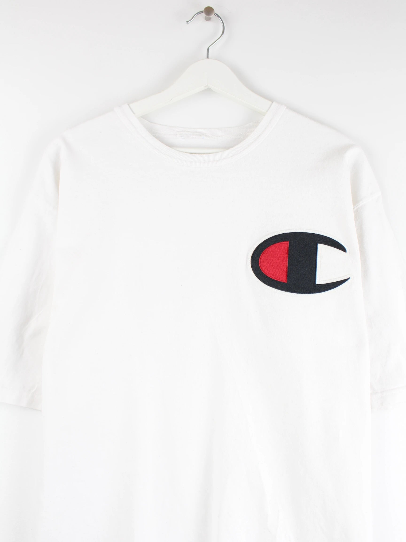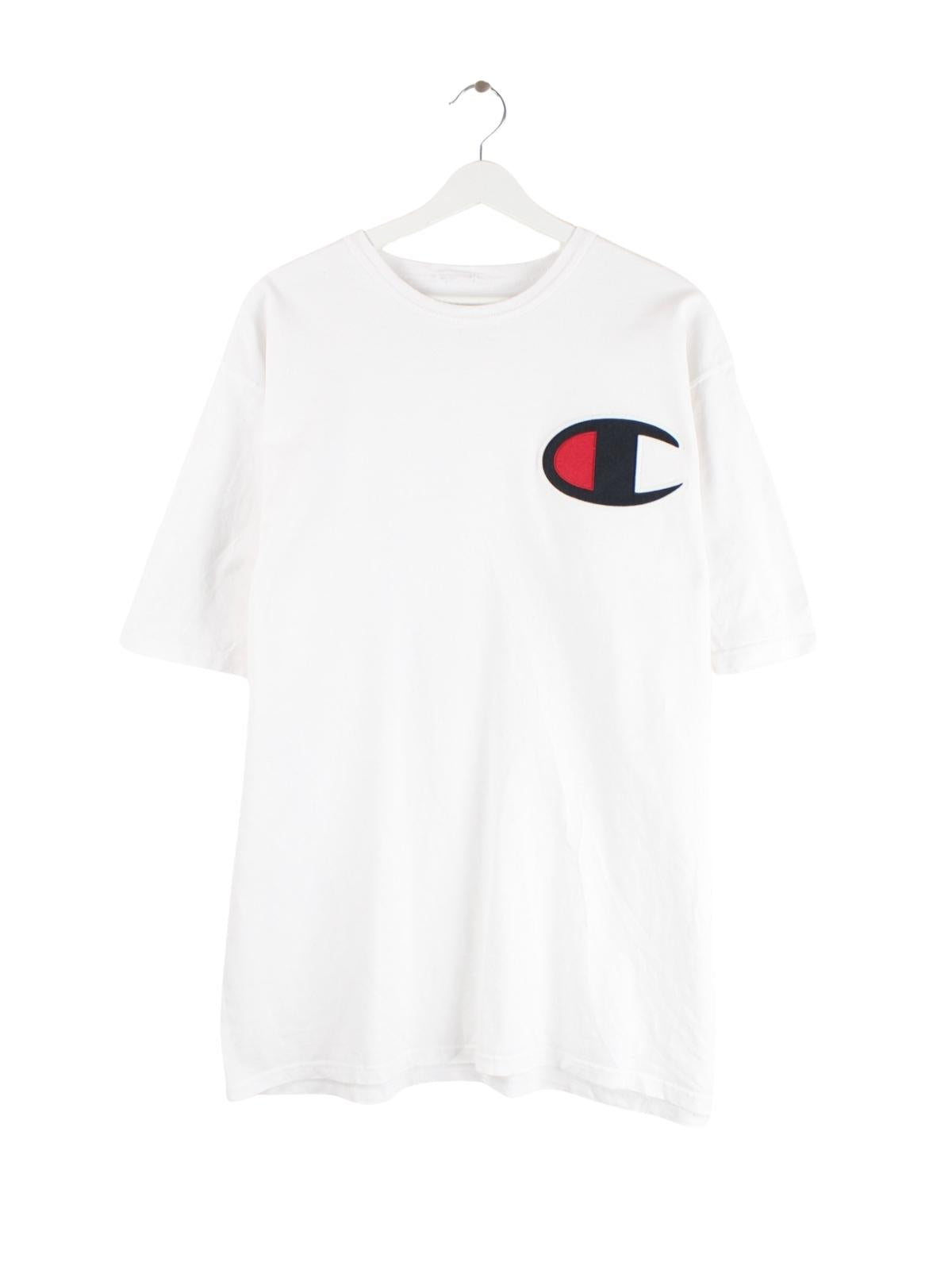 T-Shirt aus dem Hause Champion in Größe XXL. Es ist aus Baumwolle produziert und in Weiß lieferbar.