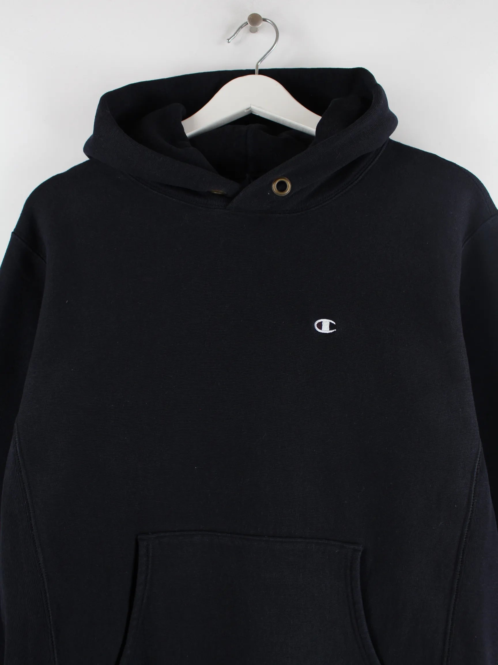 Hoodie aus dem Hause Champion in Größe M. Er ist aus einer Baumwollmischung angefertigt und in Schwarz vorrätig.
