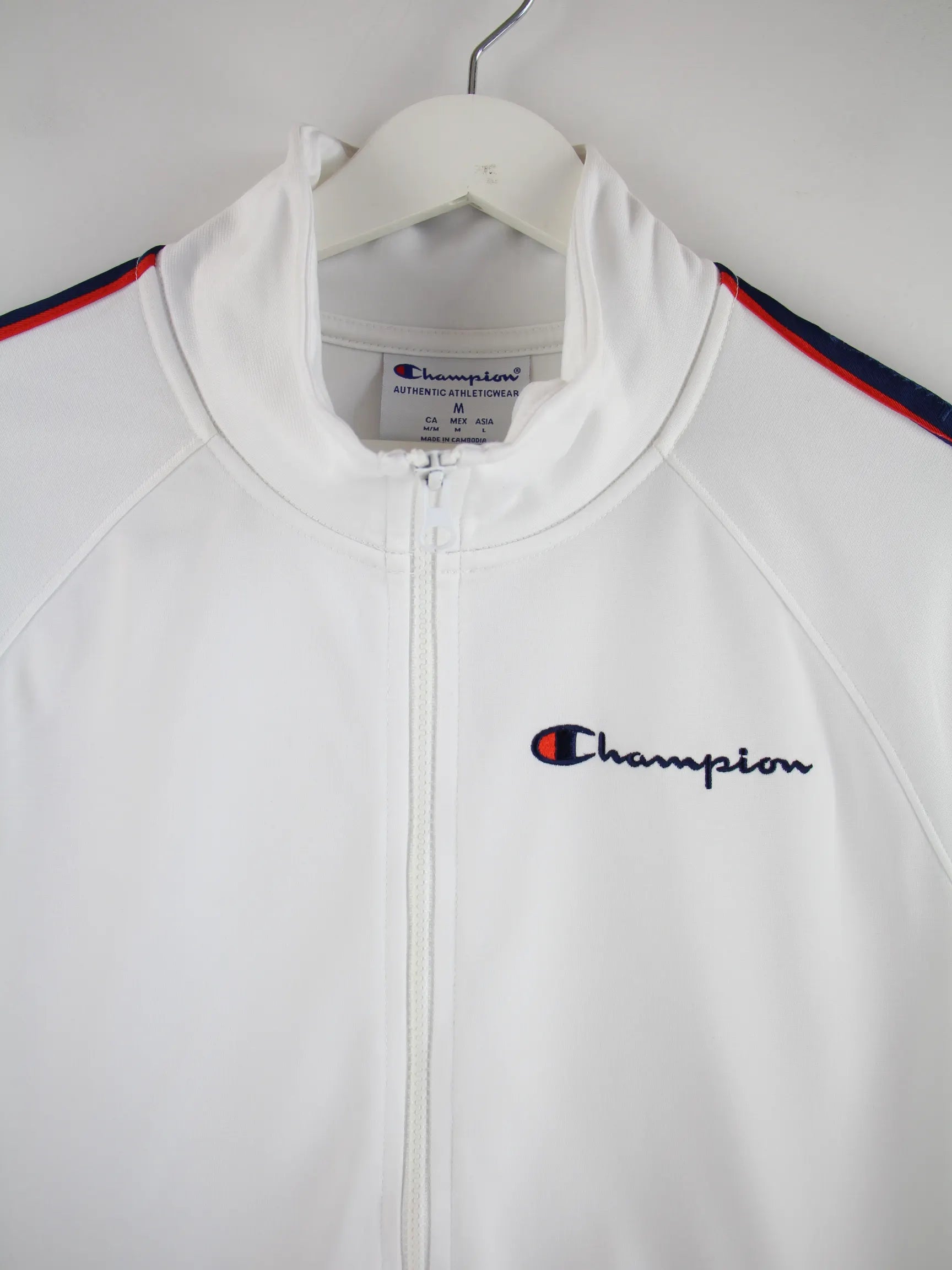 Trainingsjacke der Brand Champion in Größe M. Sie ist aus Synthetik hergestellt und in Weiß zu bekommen.