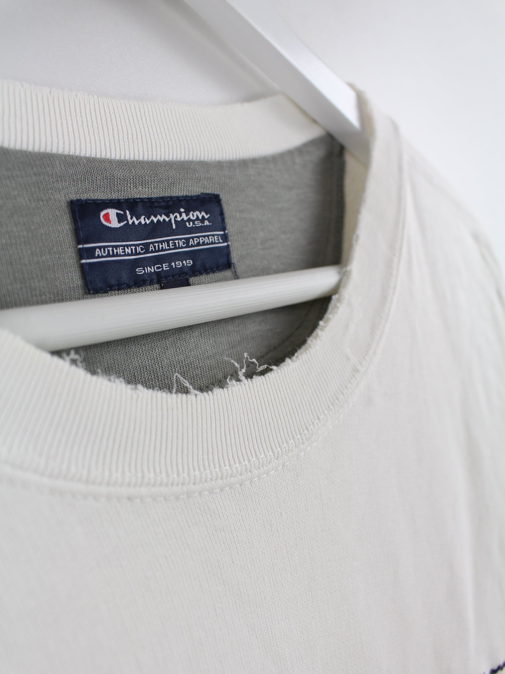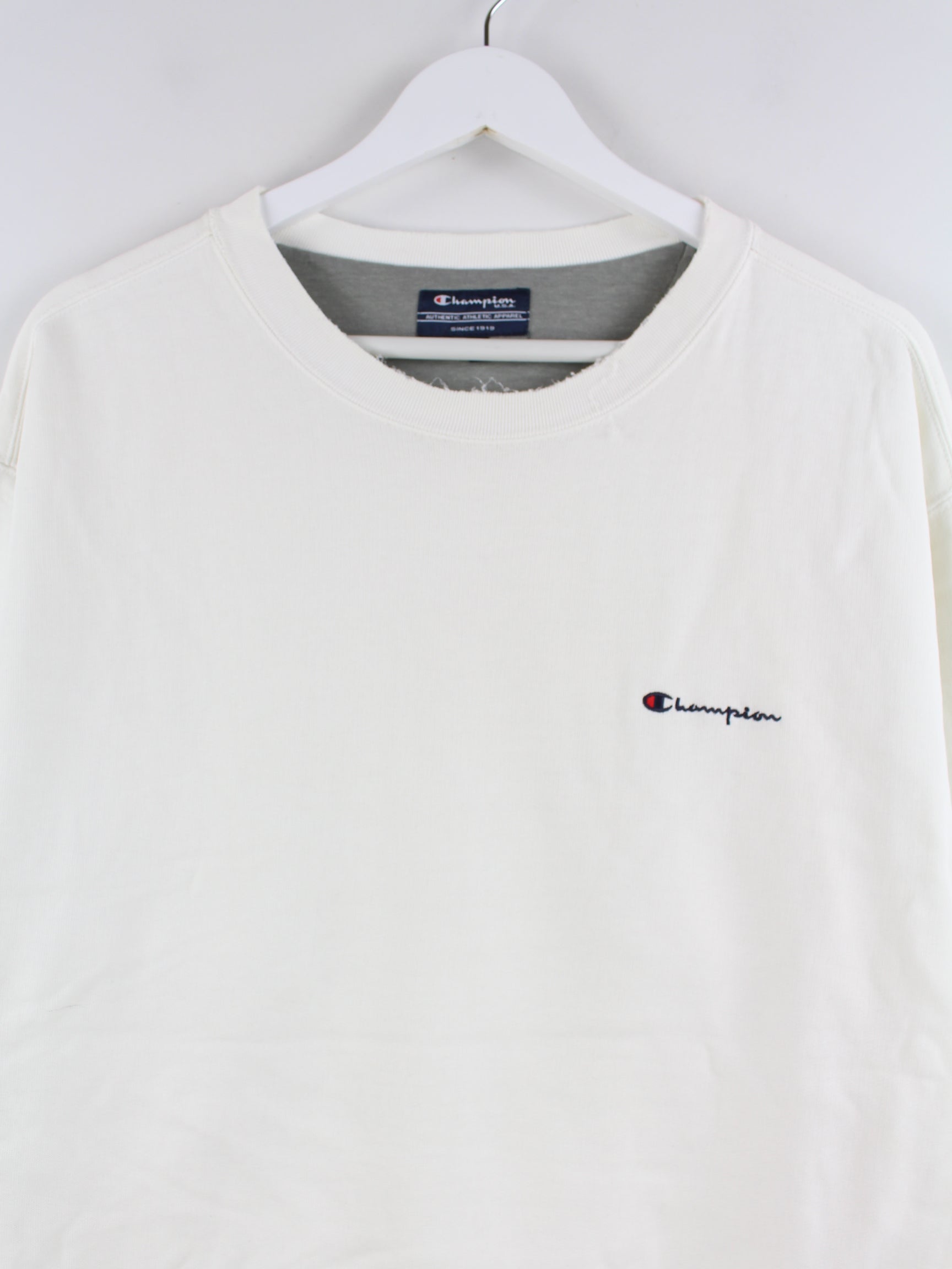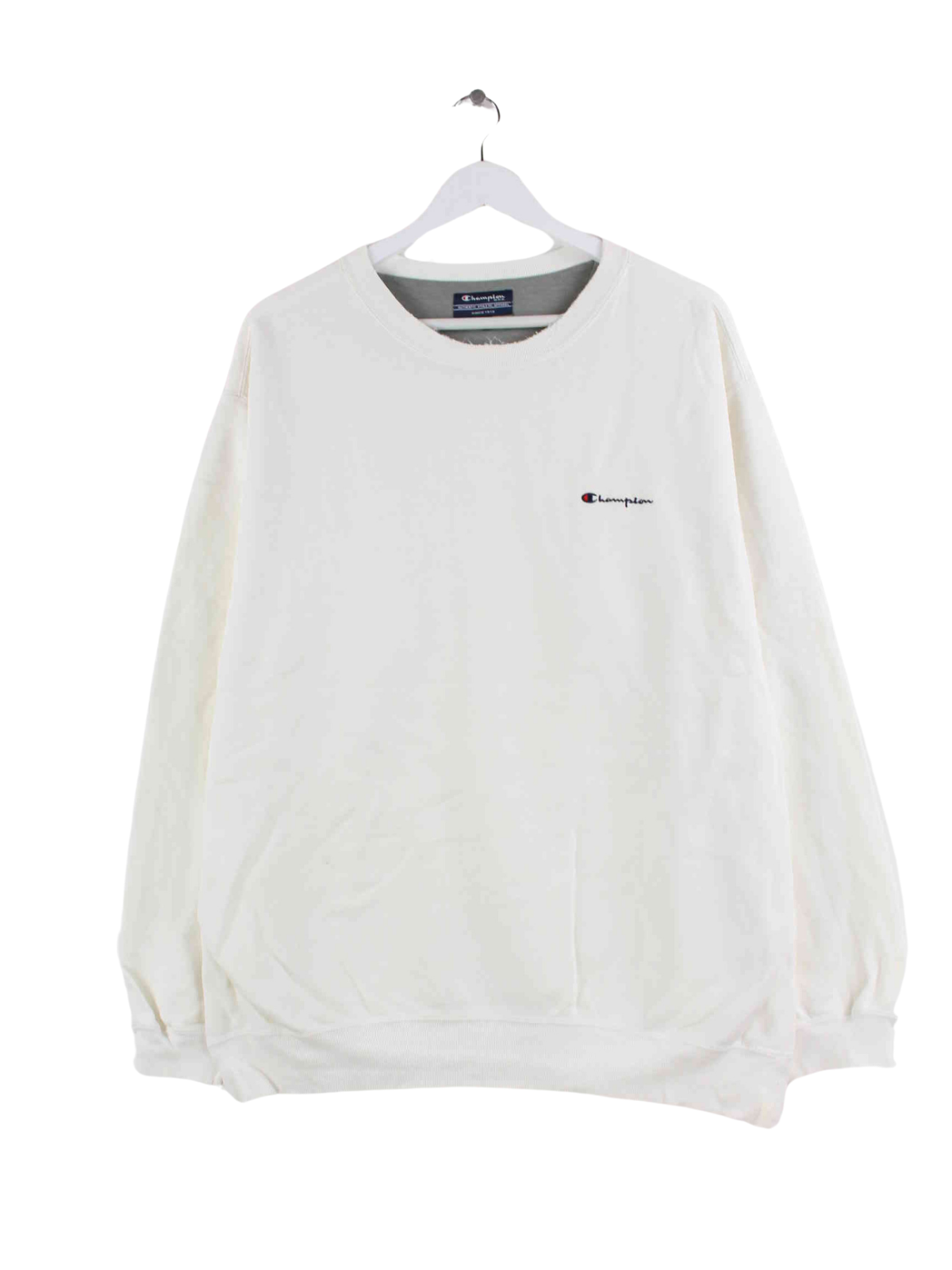 Sweater from the Champion label in size XL from the early 2000s. It is made from a cotton blend and is available in white.