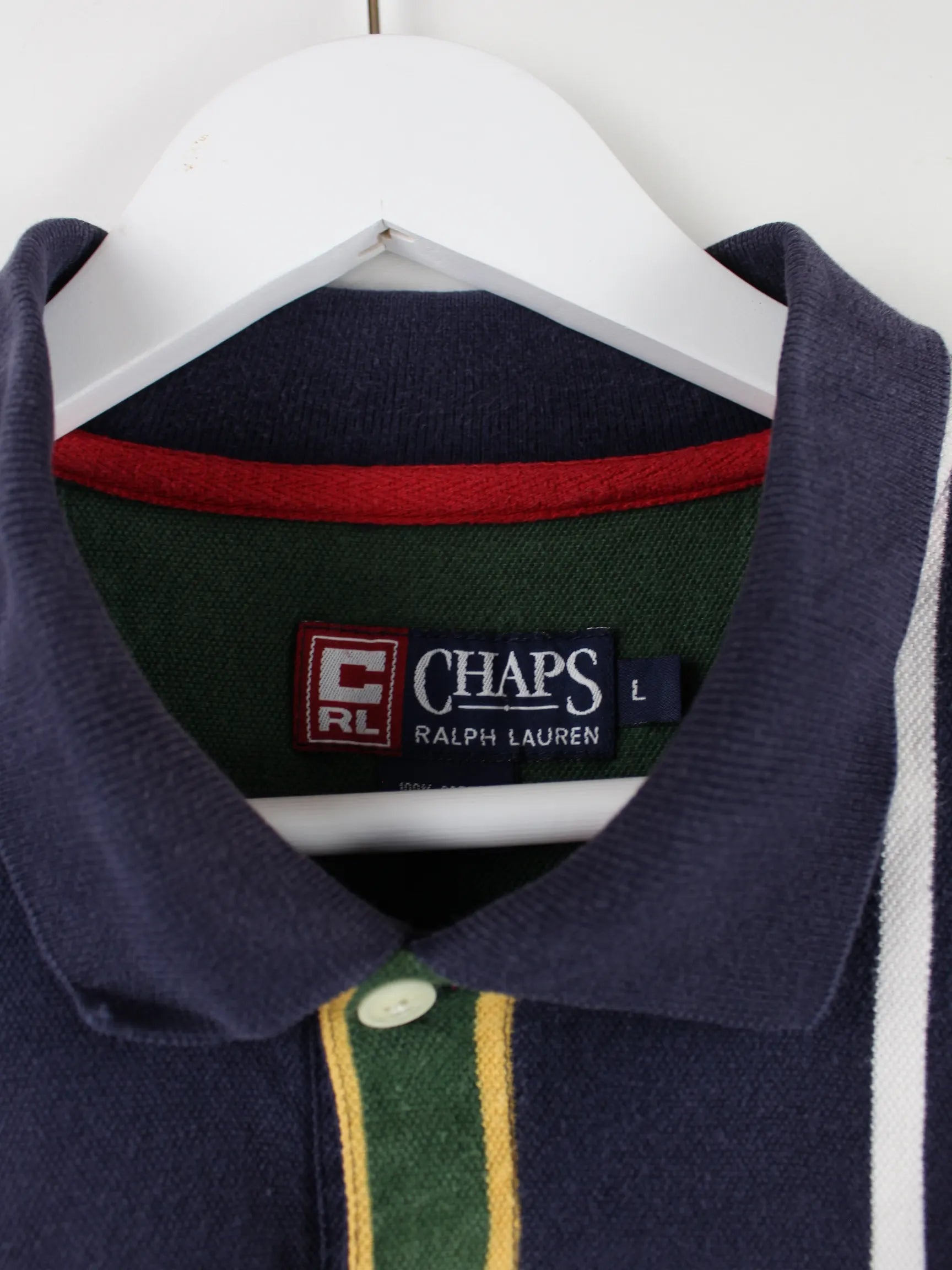 Blaues Poloshirt vom Label Chaps by Ralph Lauren in Größe L. Es ist aus Baumwolle angefertigt und in sehr gutem Zustand auf Lager.