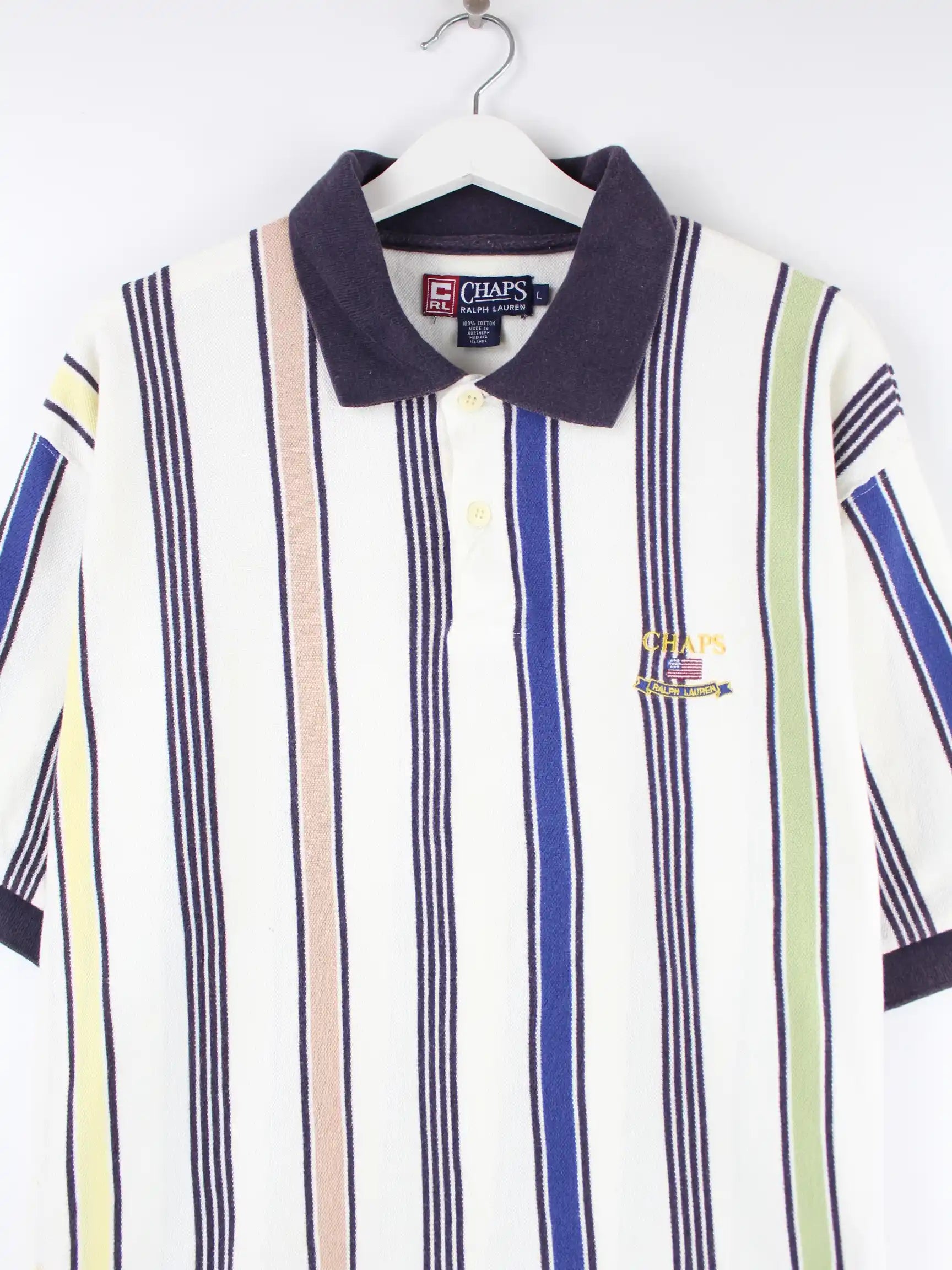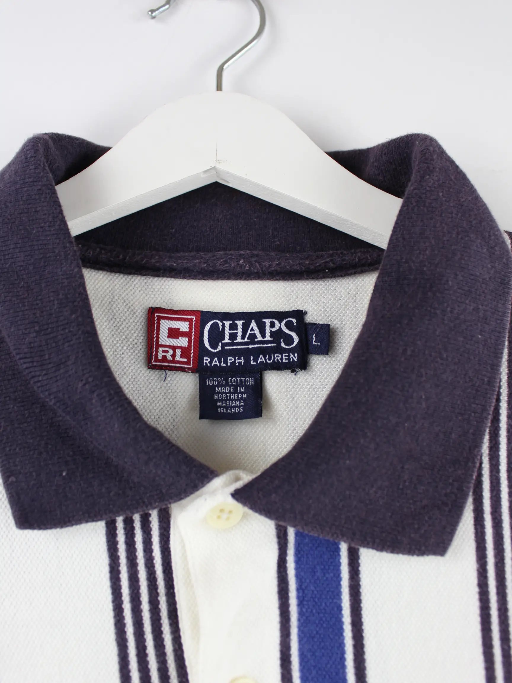 Poloshirt von Chaps by Ralph Lauren in Größe L. Es ist aus Baumwolle angefertigt und in Weiß im Bestand.