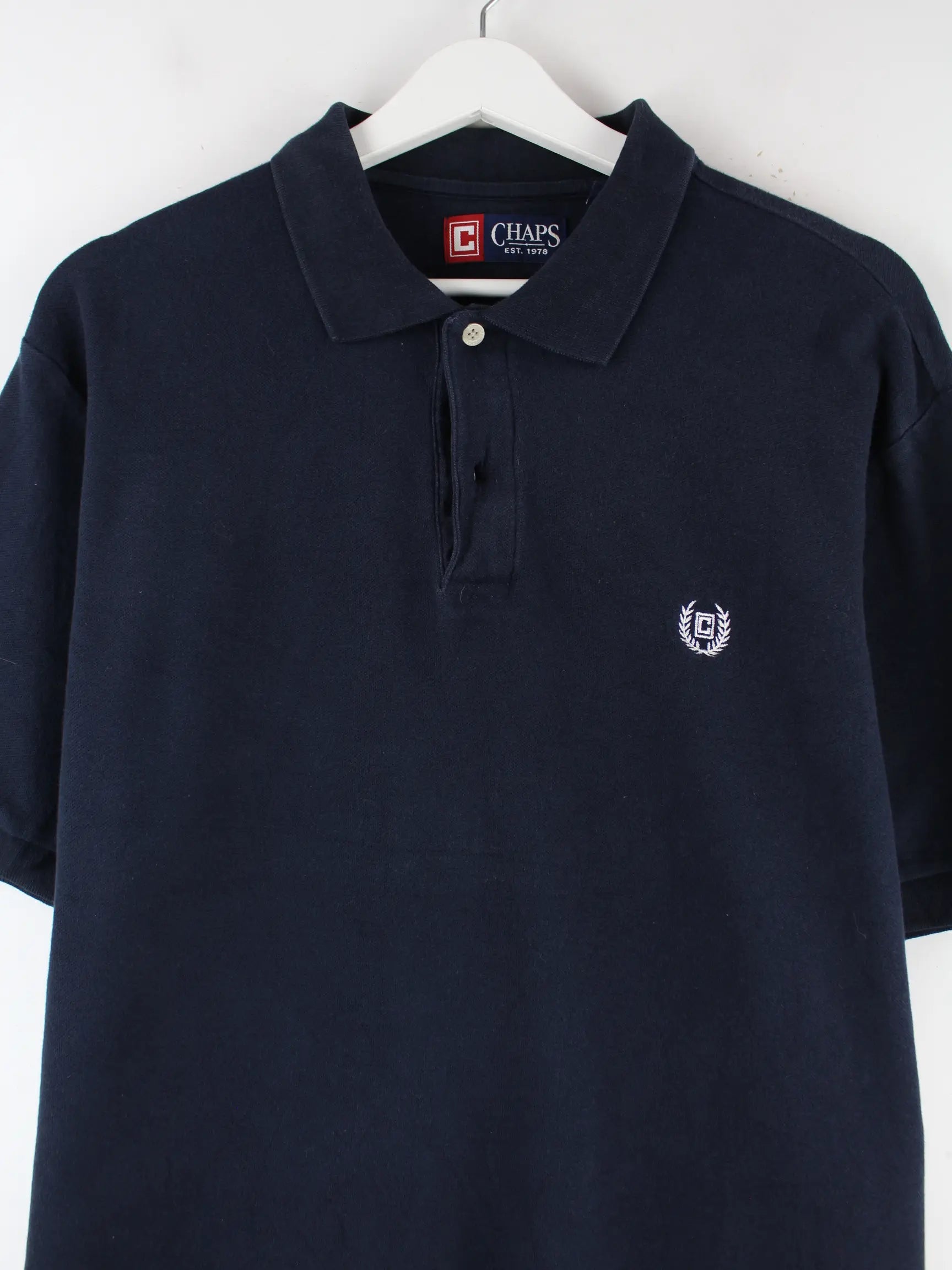 Blaues Poloshirt vom Label Chaps by Ralph Lauren in Größe L. Es ist aus Baumwolle angefertigt und in sehr gutem Zustand im Angebot.