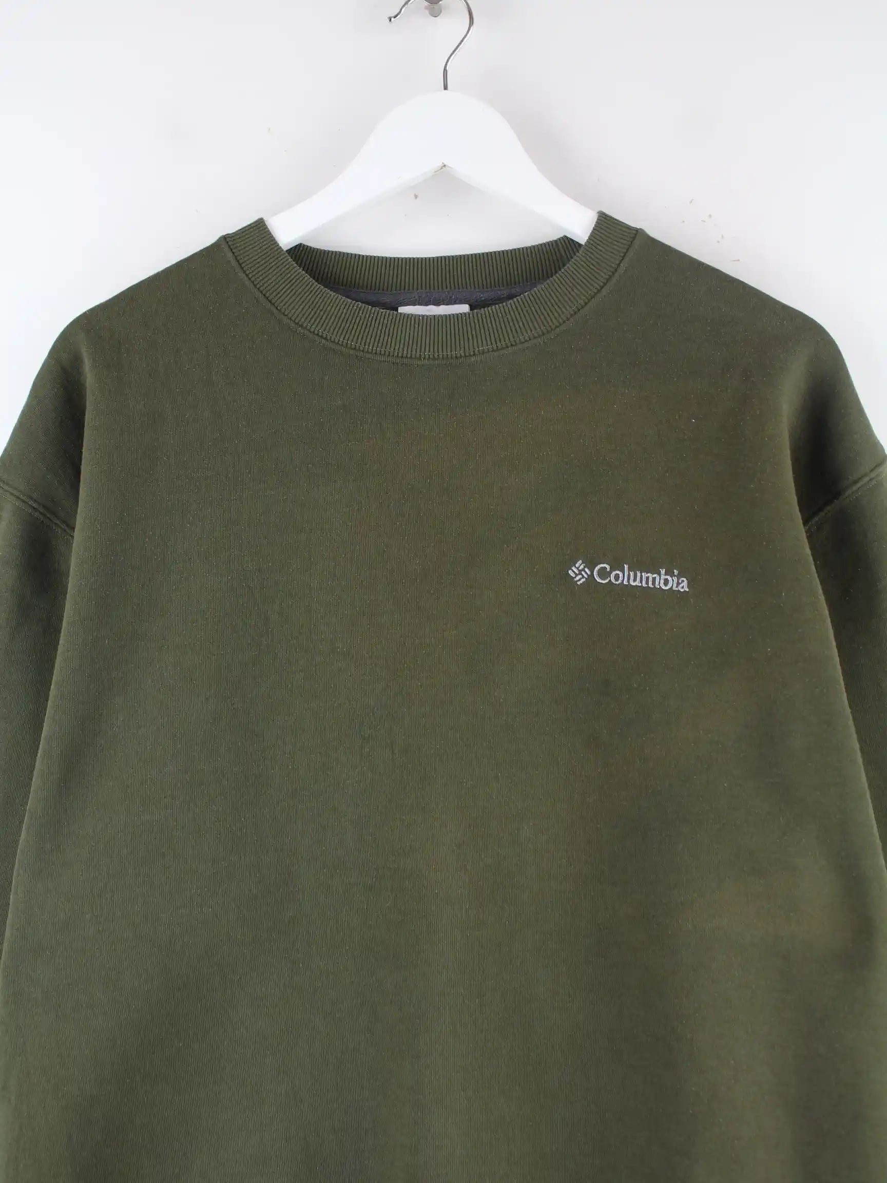 Sweater aus dem Hause Columbia in Größe L. Er ist aus einer Baumwollmischung gefertigt und in Grün bei uns zu bekommen.