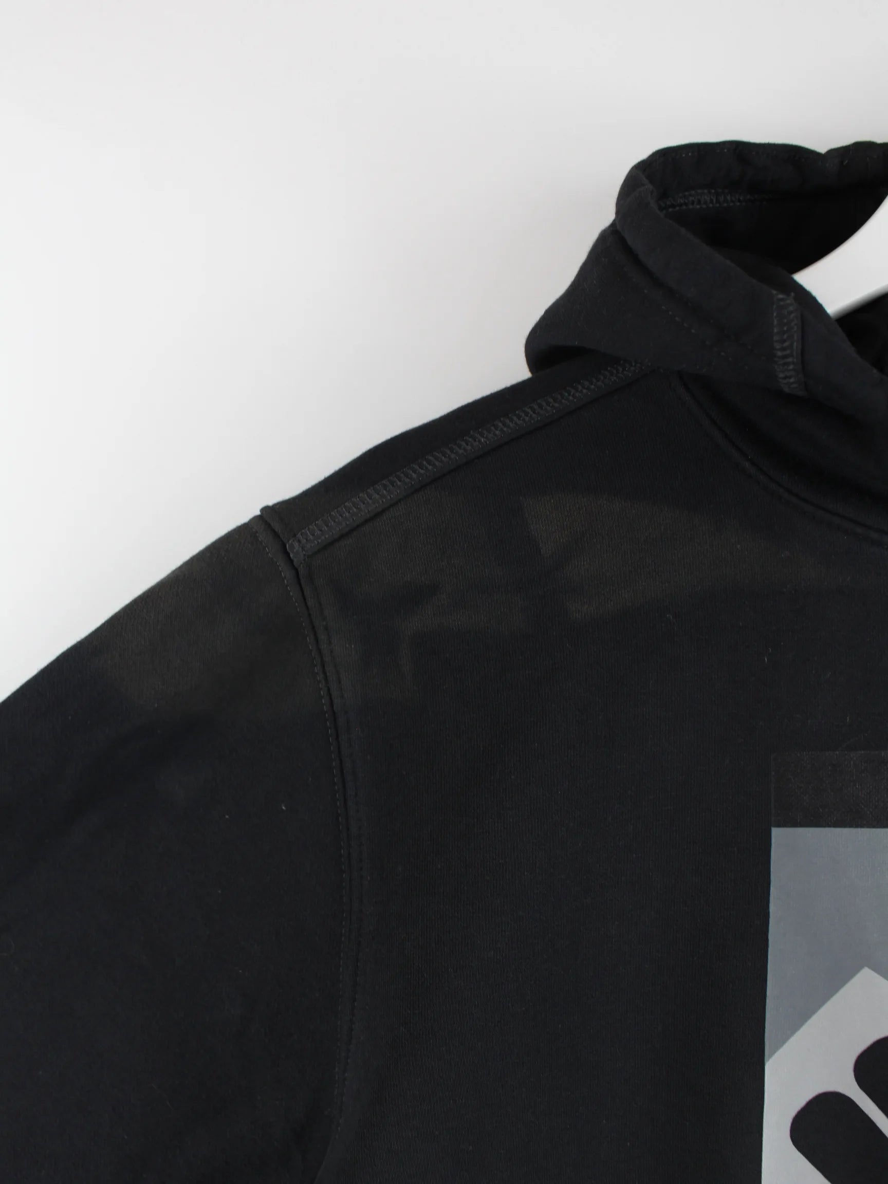 Schwarzer Hoodie von Columbia in Größe M. Er ist aus einer Baumwollmischung angefertigt. Den Zustand würden wir als 'In Ordnung' bezeichnen (vergl. Bilder).Mit schönem Print.