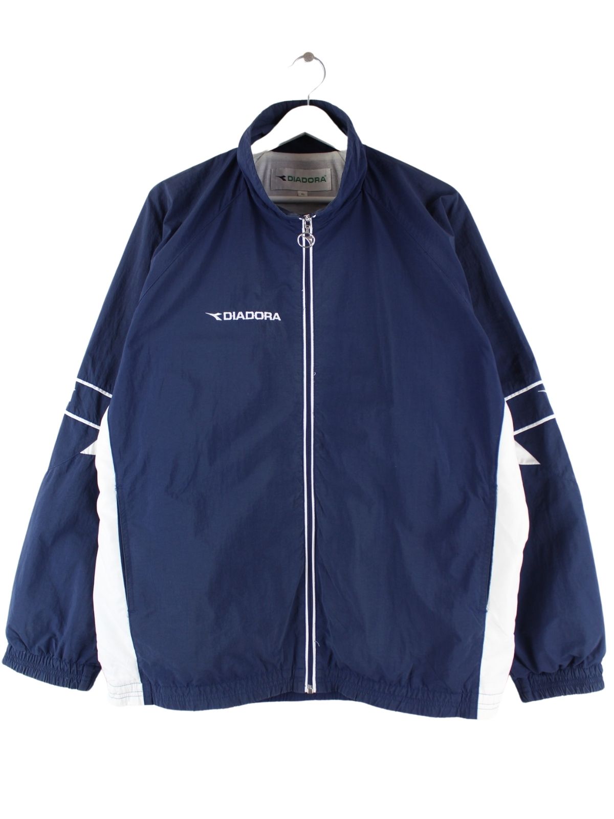 Blaue Leichte Jacke der Brand Diadora aus den 90'ern in Größe XL. Sie ist aus Synthetik angefertigt und in sehr gutem Zustand bei uns zu bekommen.