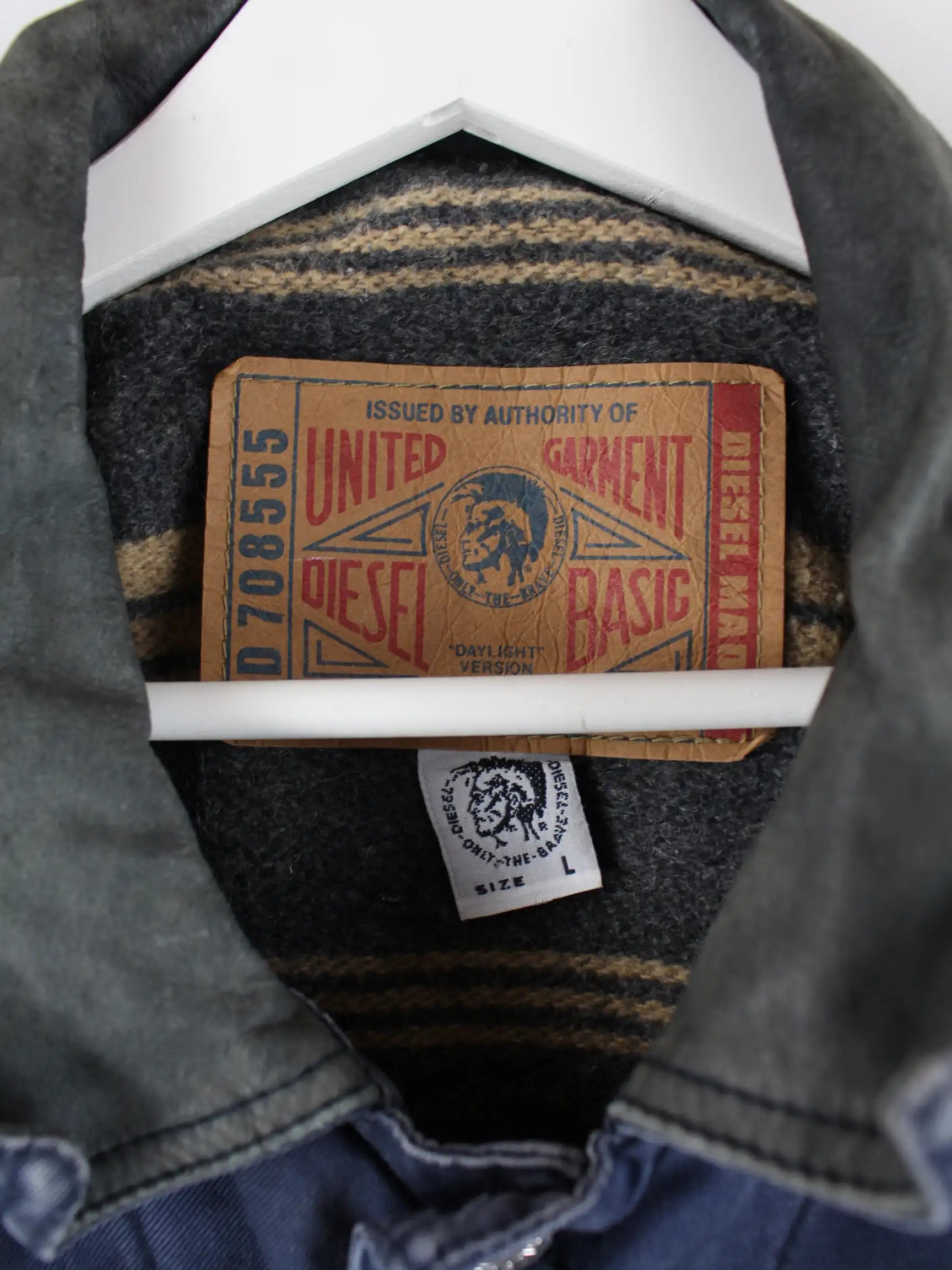 Leichte Jacke aus dem Hause Diesel in Größe L aus den 90'ern. Sie ist aus Synthetik gemacht und in Blau bei uns zu bekommen.