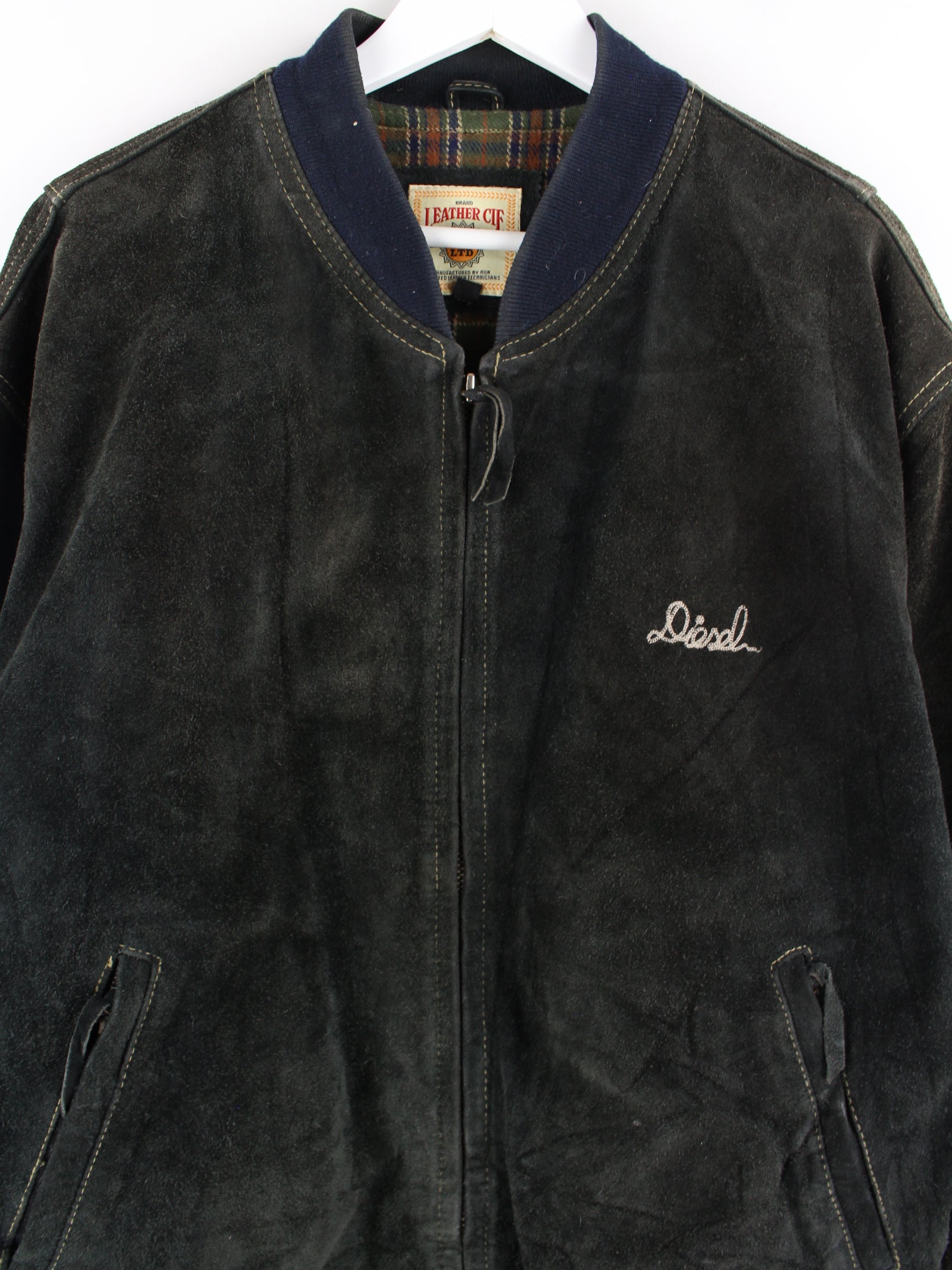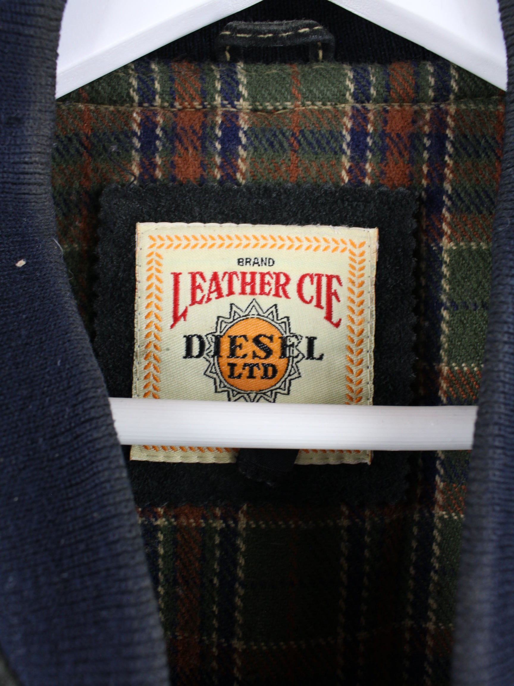 Green jacket from Diesel from the 90s in size L. It is made of leather and is available from us in very good condition.