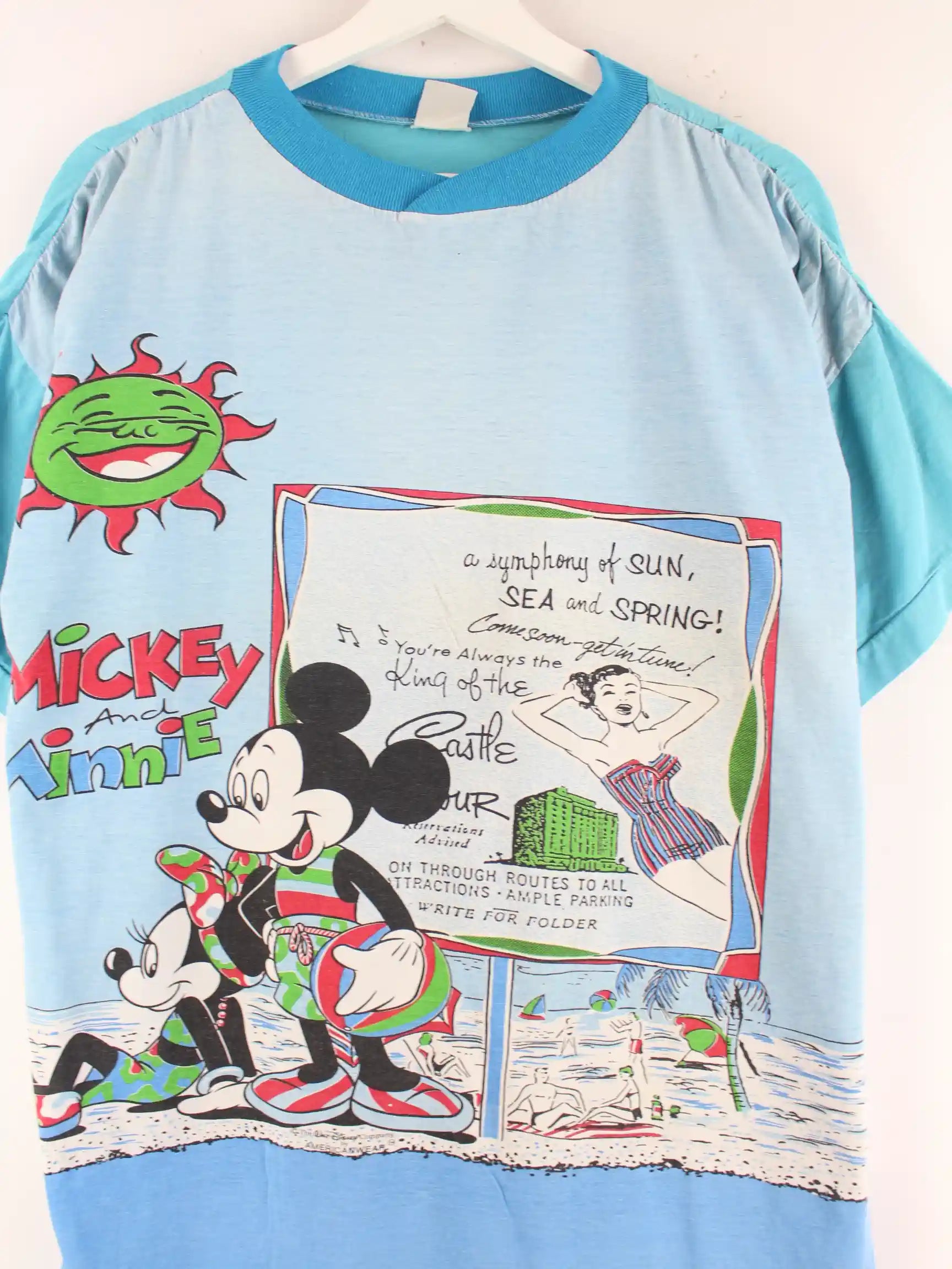 Disney 80s Vintage Mickey Mouse Print Single Stitch T-Shirt Blau 3XL