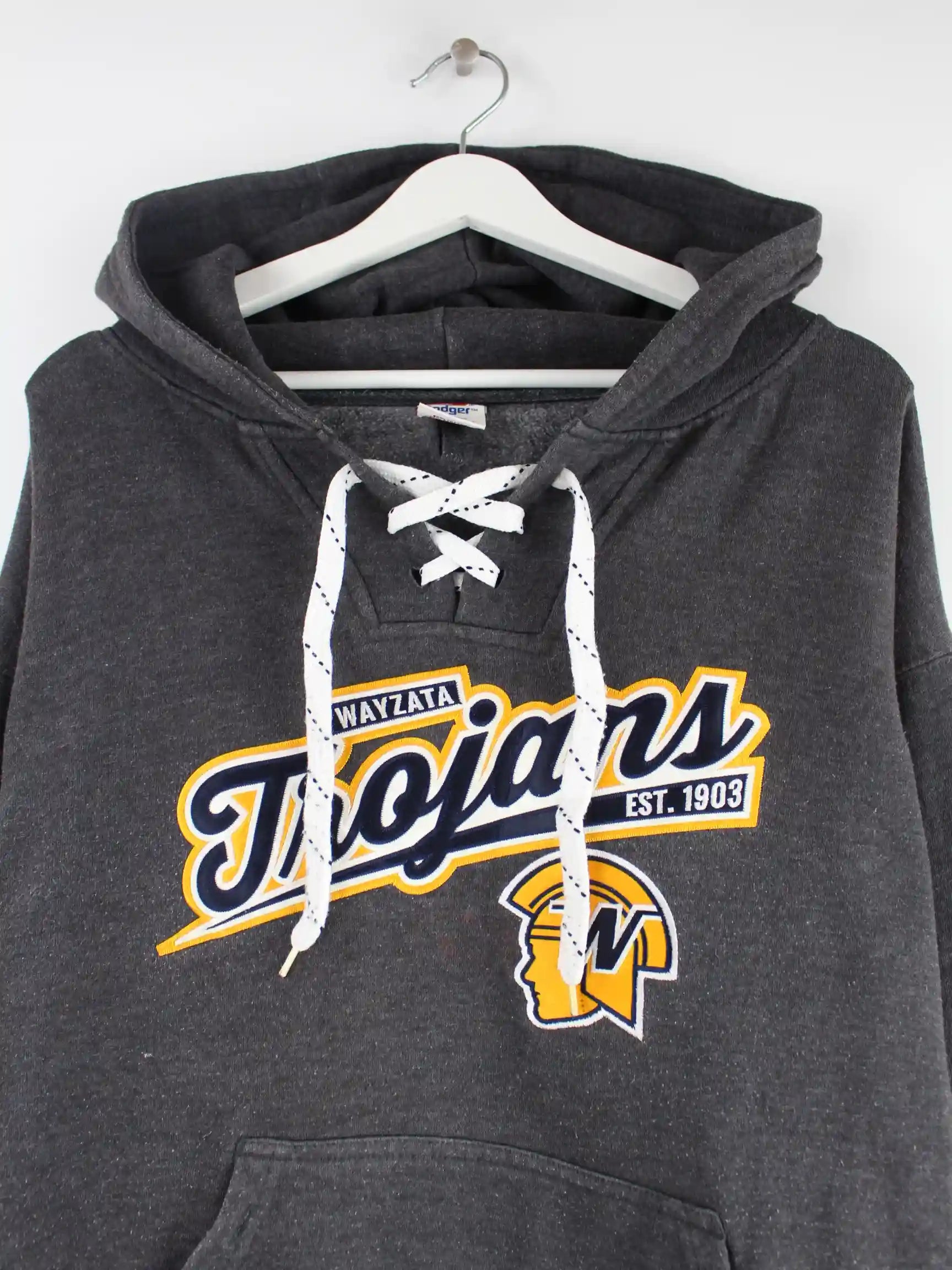 Grauer Hoodie vom Brand Dodger in Größe M. Er ist aus einer Baumwollmischung hergestellt und in sehr gutem Zustand im Bestand.