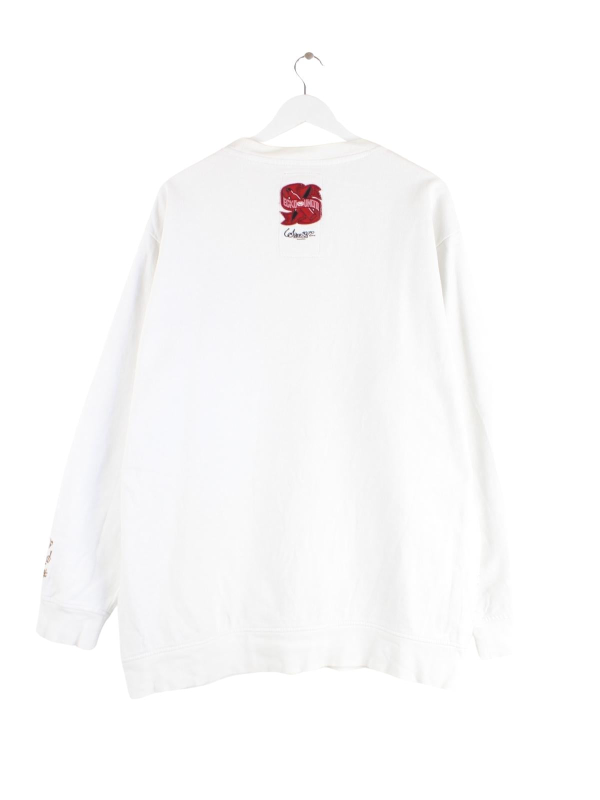 Grauer Sweater mit gestickten Motiven des Labels Ecko in Größe L. Er ist aus einer Baumwollmischung gemacht und in sehr gutem Zustand im Angebot.