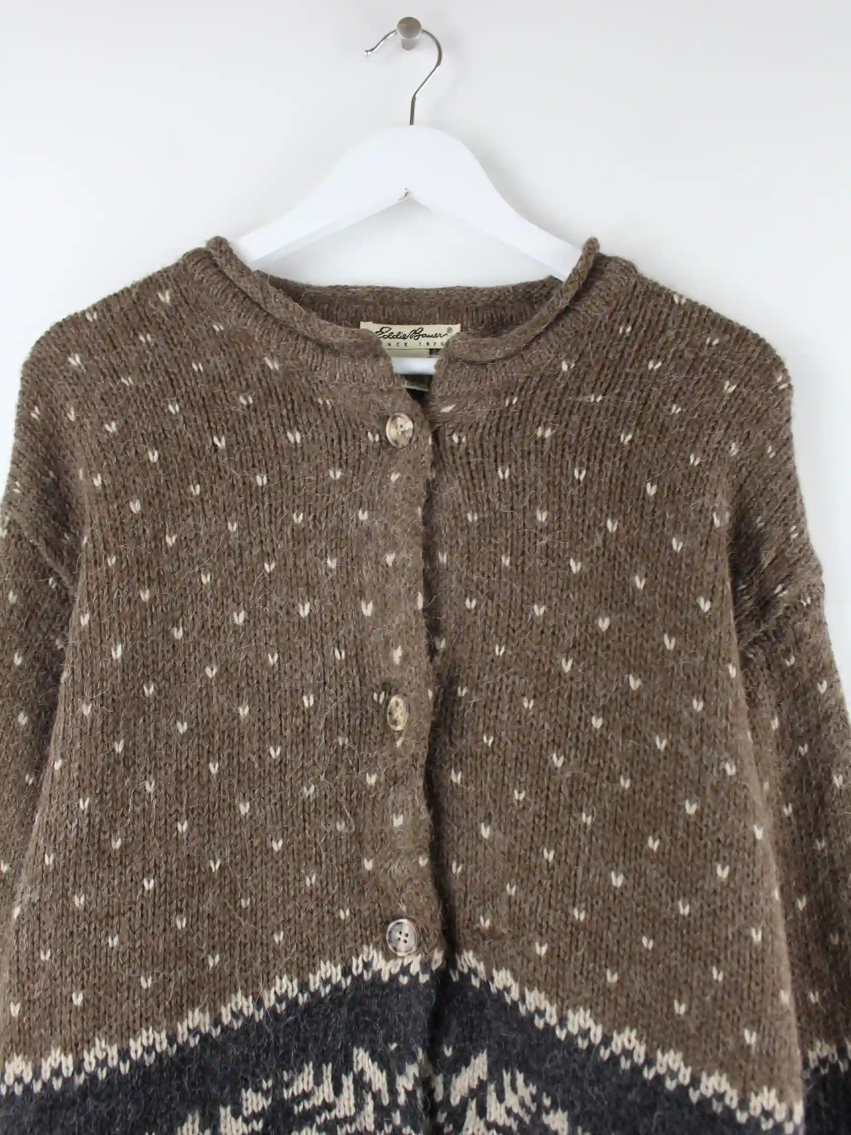Strickjacke vom Brand Eddie Bauer in Größe XL. Sie ist aus Wolle hergestellt und in Braun zu bekommen.