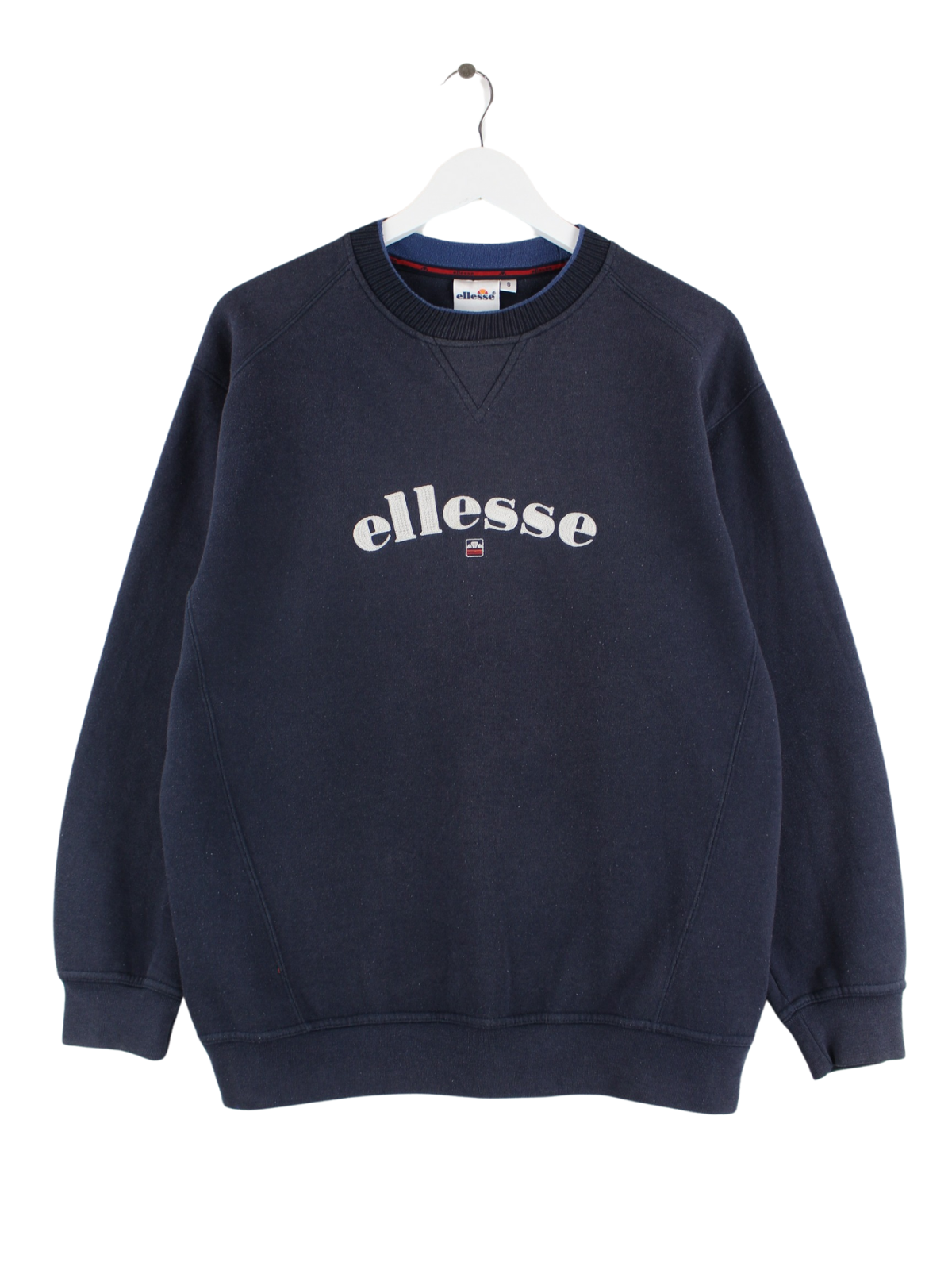 Blauer Sweater mit Stick der Brand Ellesse in Größe S. Er ist aus einer Baumwollmischung gefertigt und in gutem Zustand im Angebot.