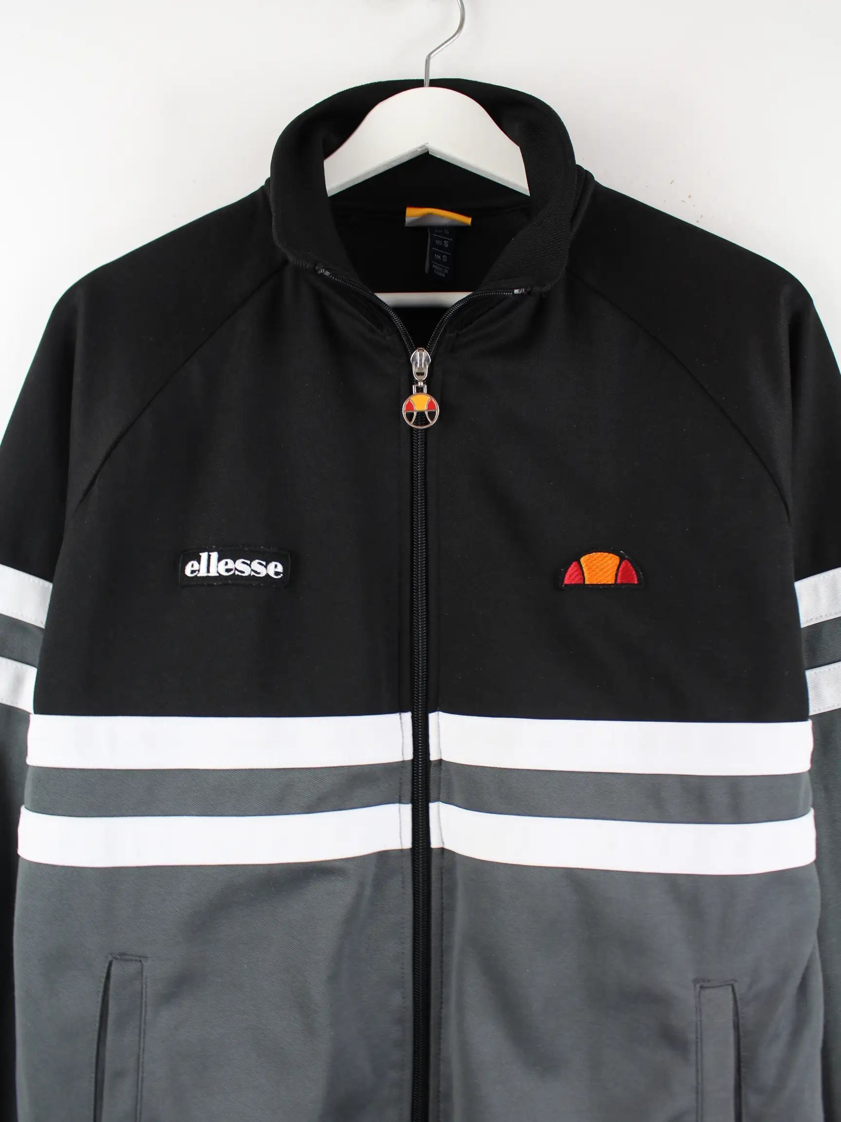 Graue Trainingsjacke der Marke Ellesse in Größe S. Sie ist aus Synthetik gefertigt und in gutem Zustand im Bestand.