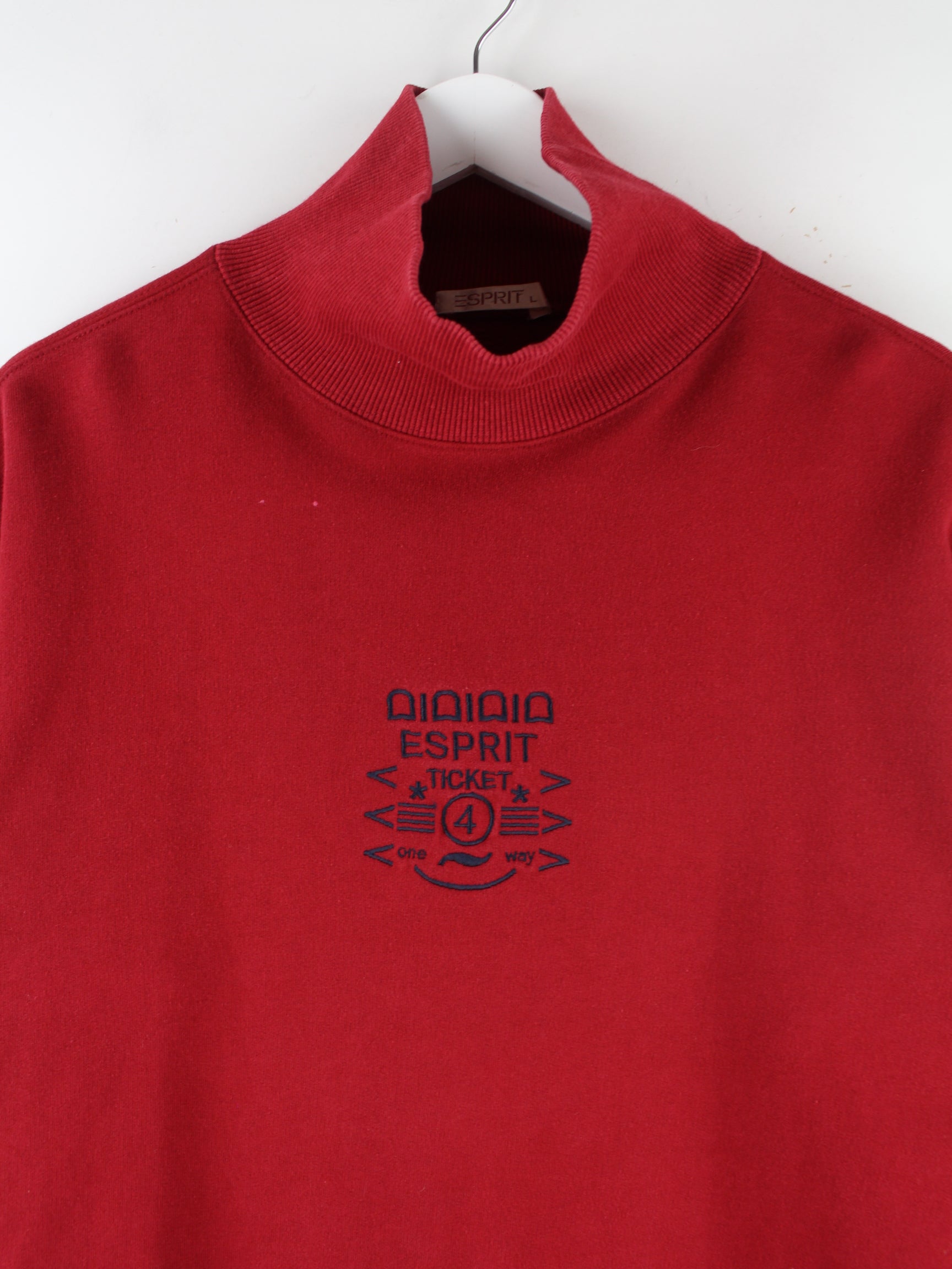 Esprit Damen 90s Vintage Embroidered Rollkragen Sweater Rot L