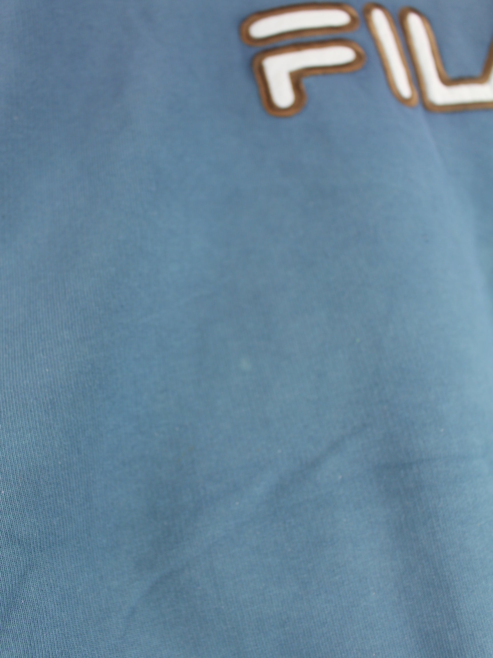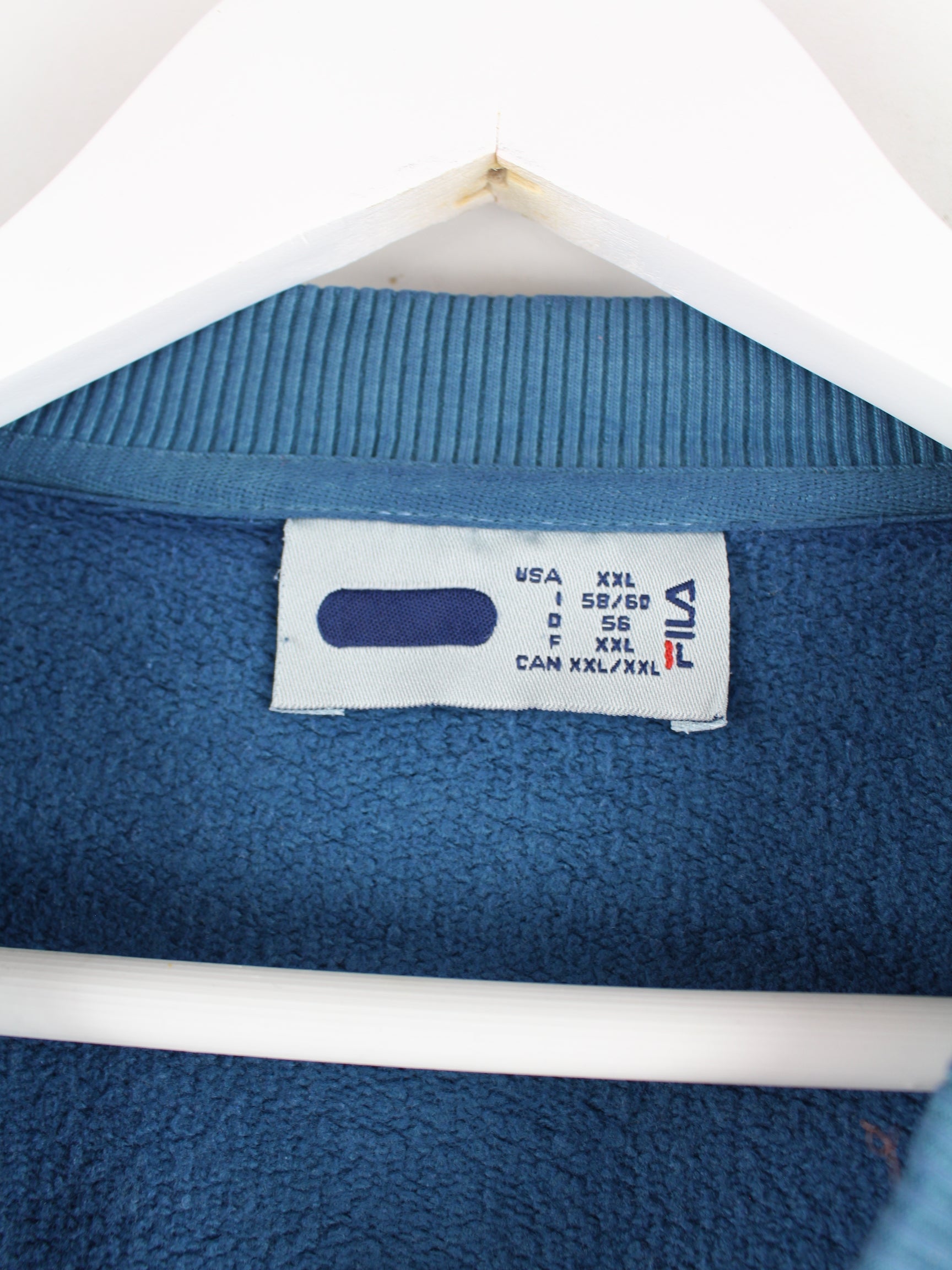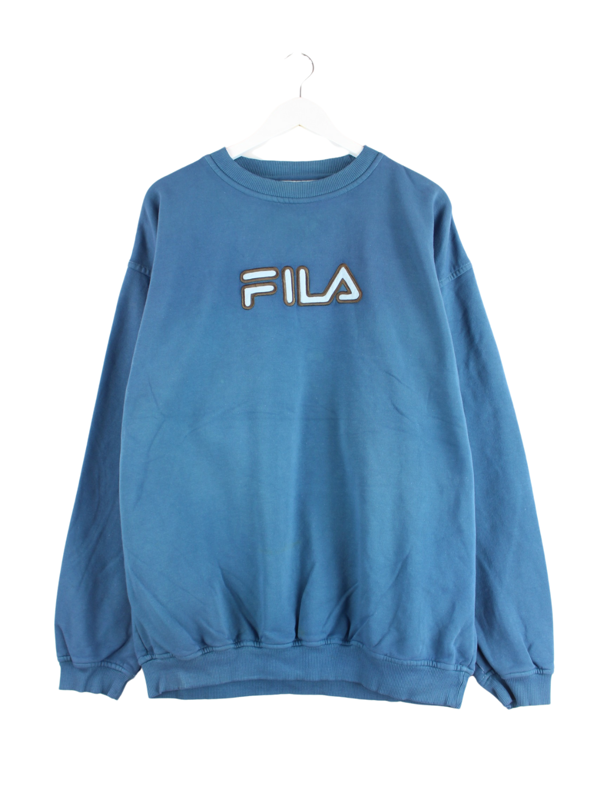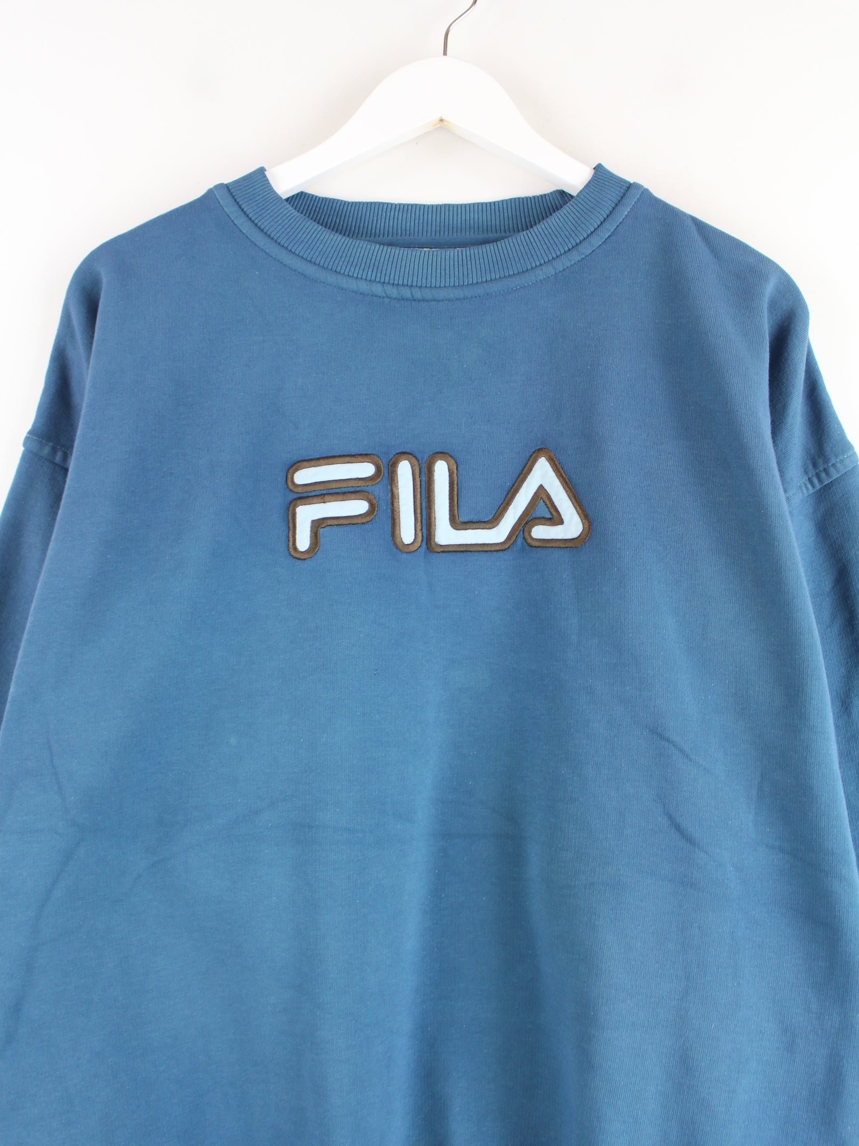 Sweater from the label Fila with embroidered logo in size XXL. It is made from a cotton blend and is available in blue.