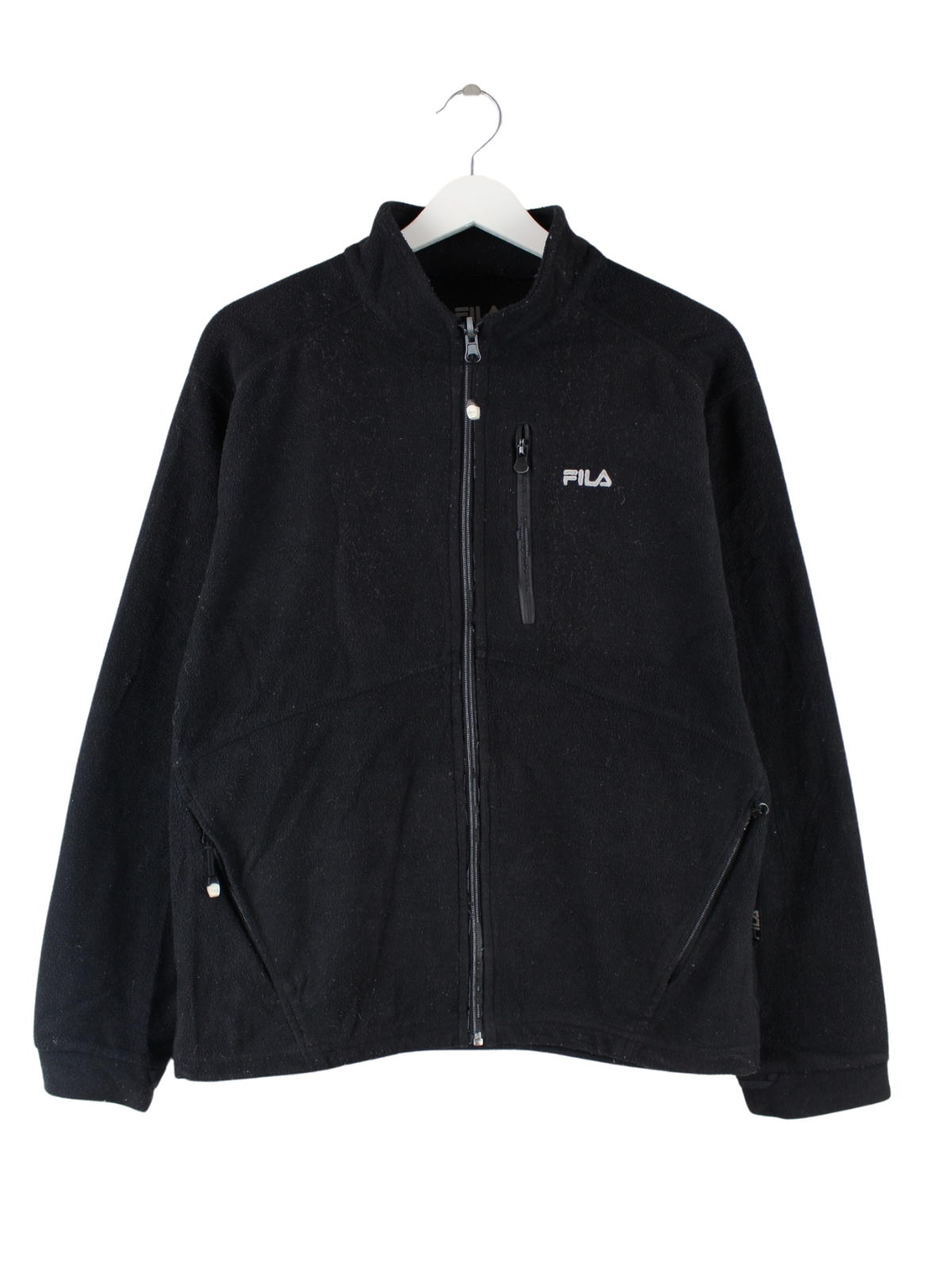 Leichte Jacke des Labels Fila in Größe S. Sie ist aus behaglichem Fleece gemacht und in Schwarz in Stock.
