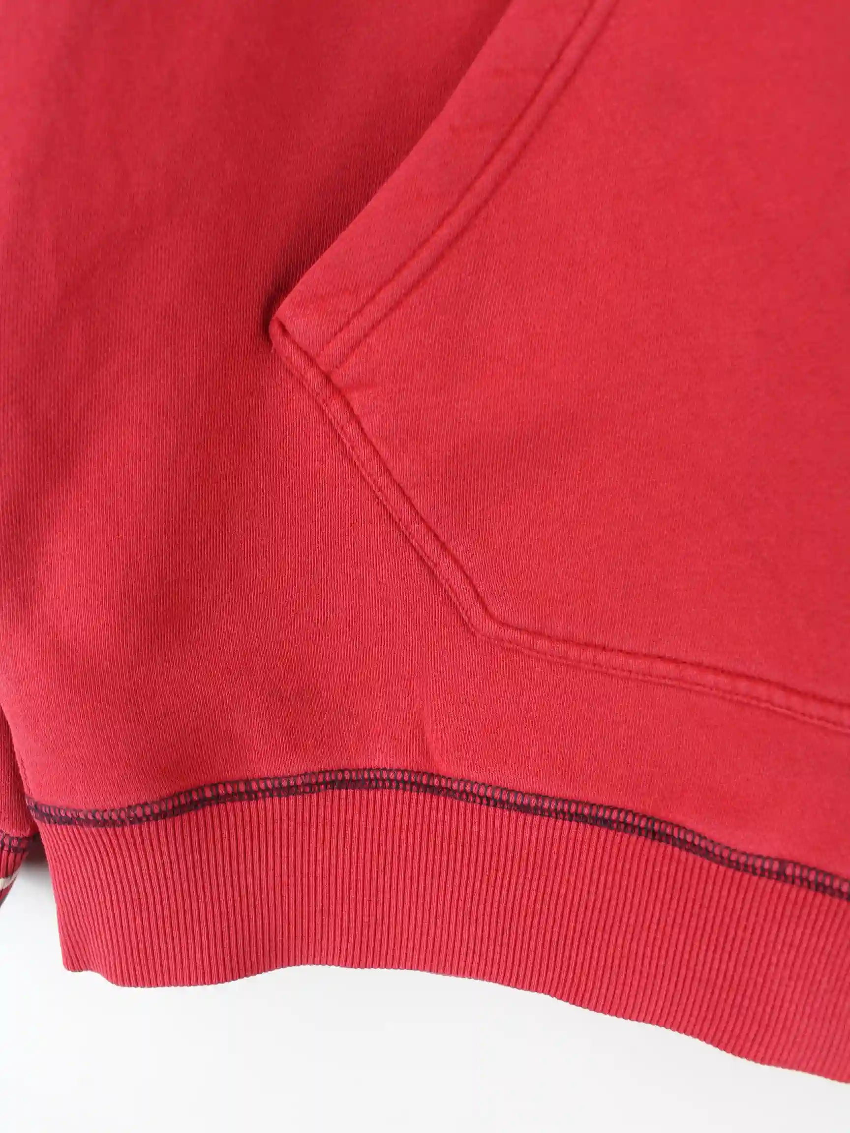 Roter Hoodie mit Stick des Labels Fila aus den 90'ern in Größe M. Er ist aus einer Baumwollmischung produziert. Den Zustand würden wir als 'In Ordnung' bezeichnen (vergl. Bilder).