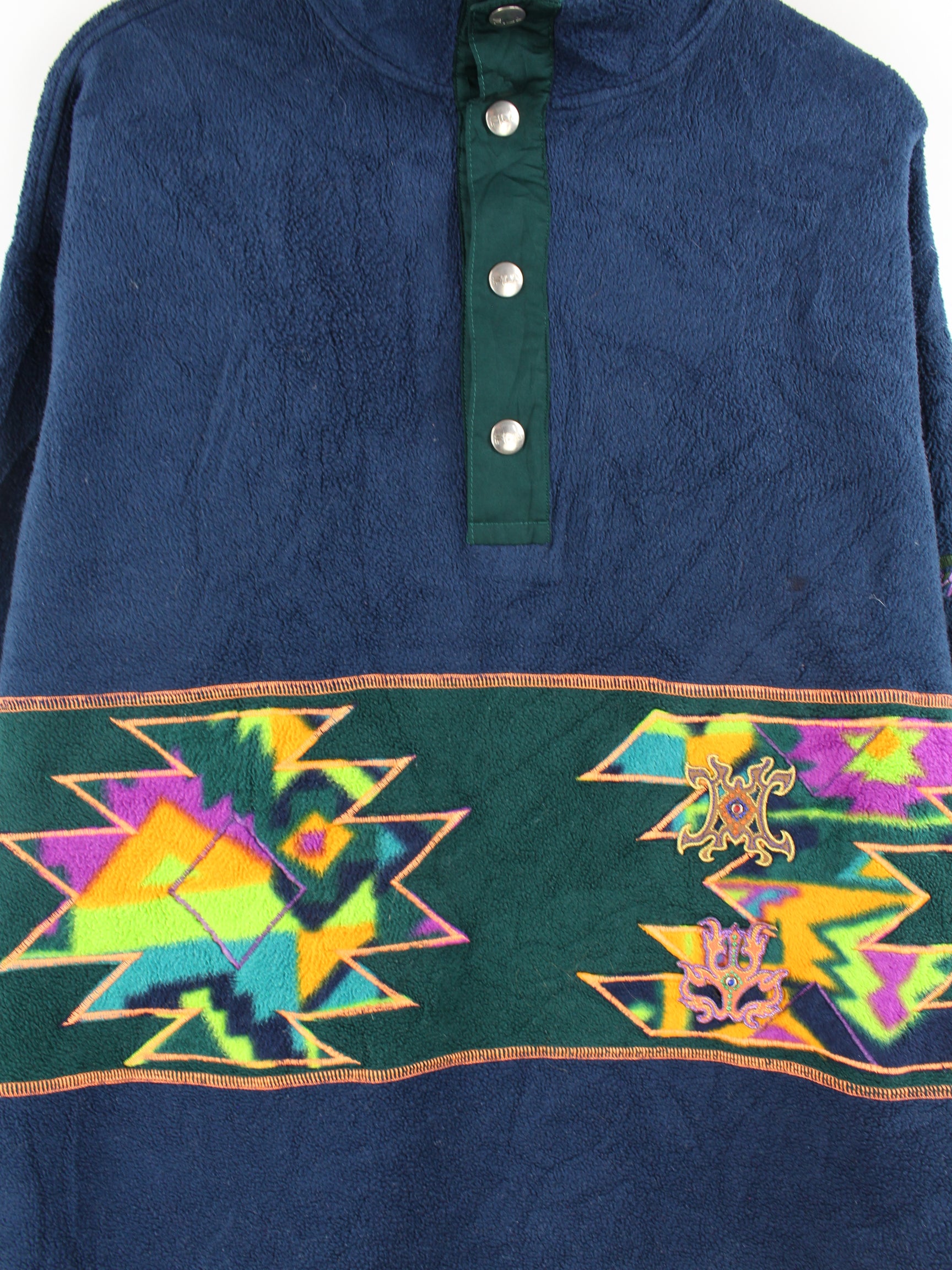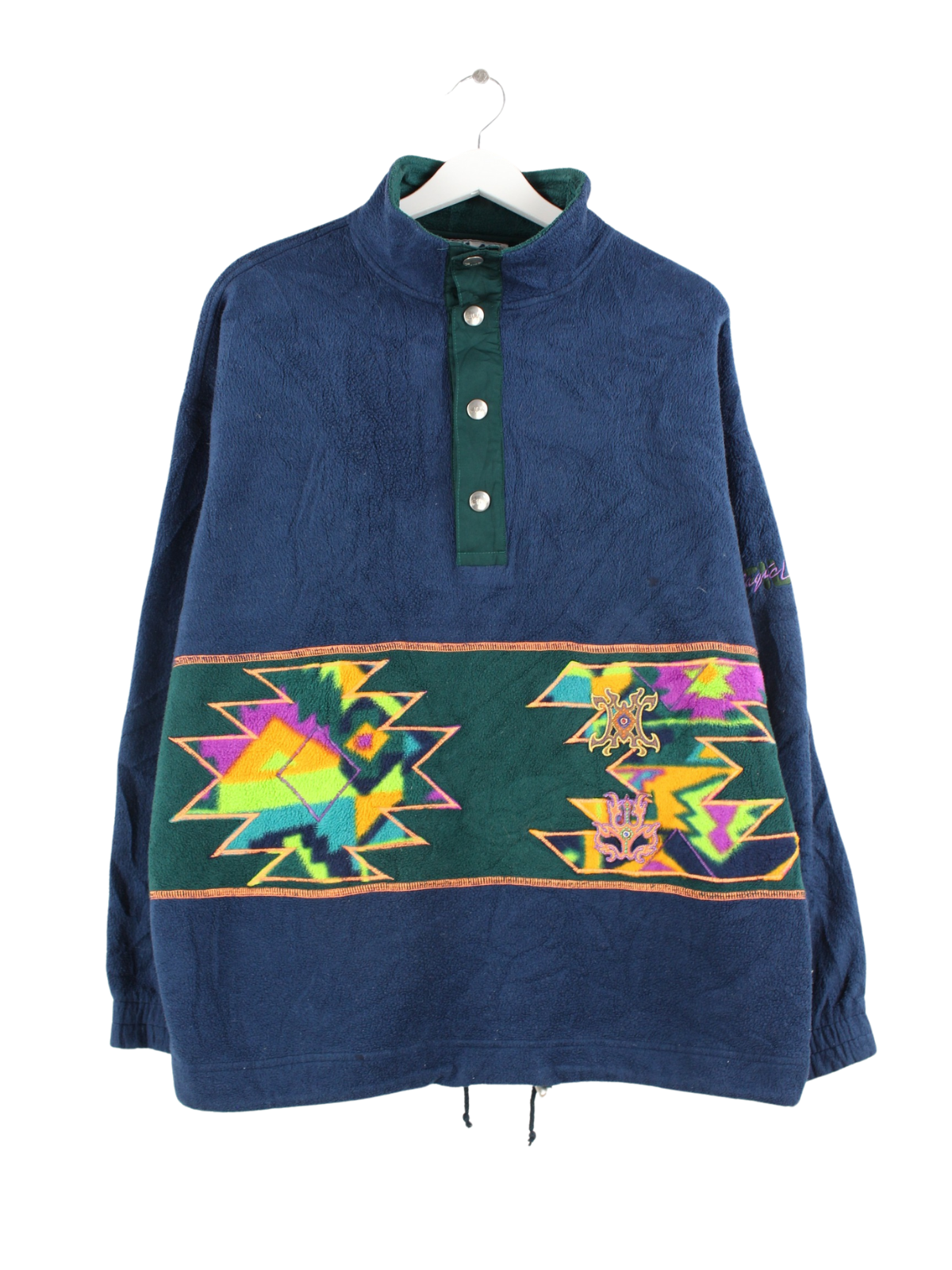 Blue sweater with embroidered logo from the Fila label from the 90s in size L. It is made of synthetic material and is in stock in very good condition.