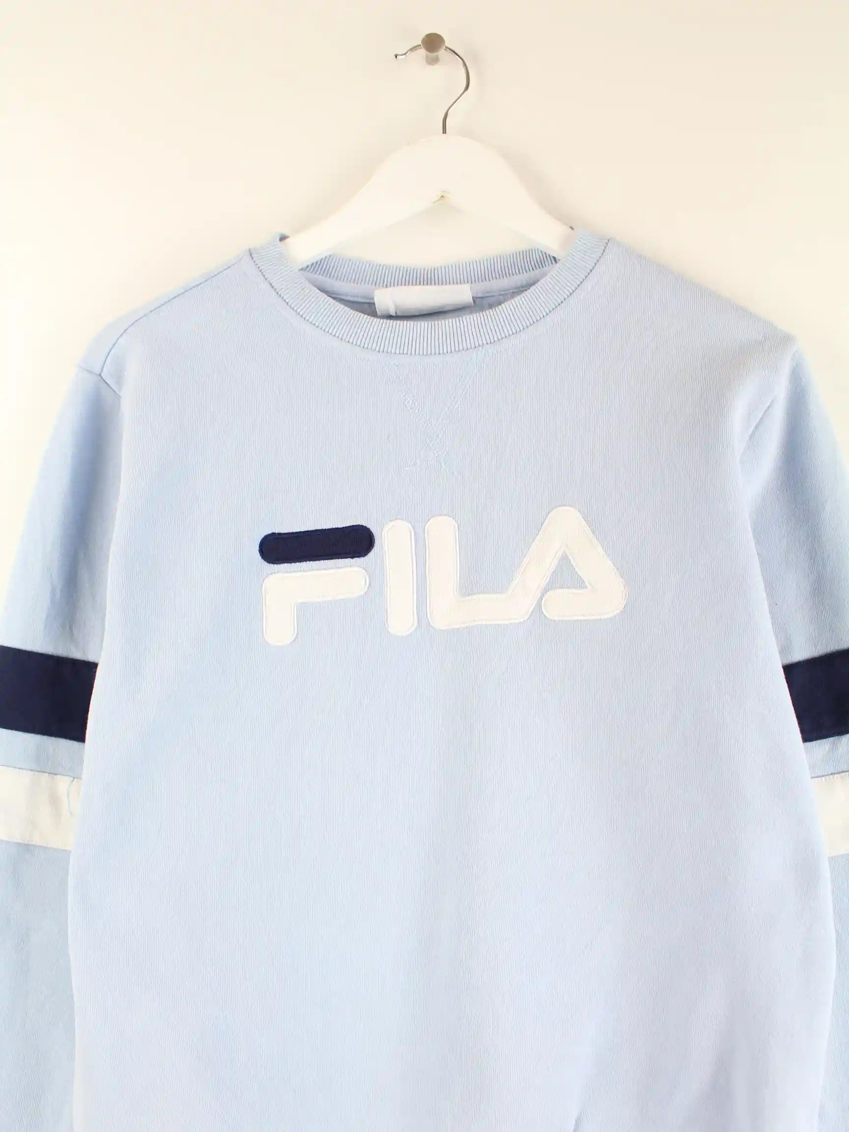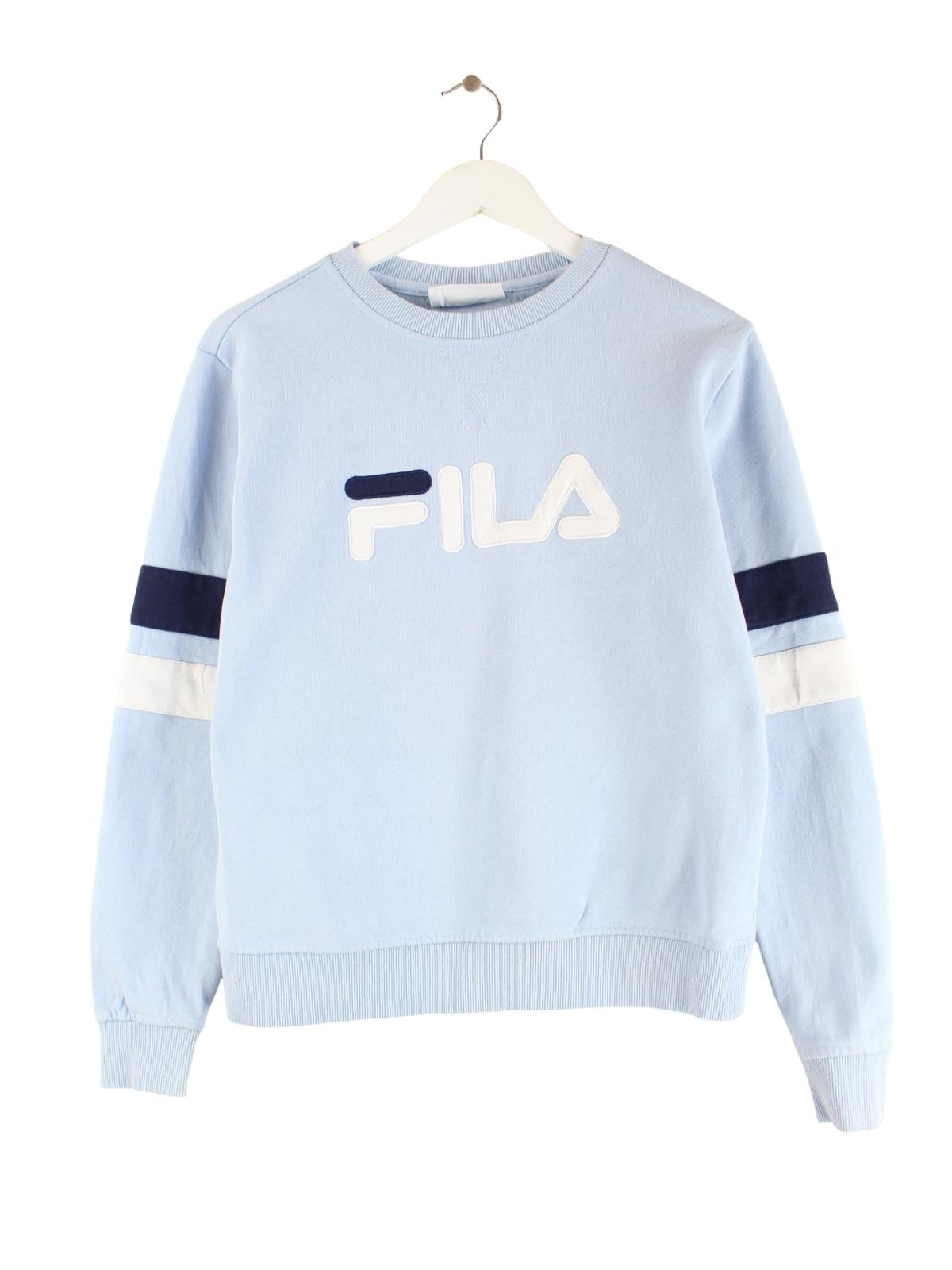 Blauer Fila Crewneck Sweater in Größe S mit großem Logo auf der Brust. Er ist aus einer Baumwollmischung angefertigt und in gutem Zustand im Angebot.