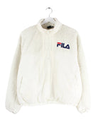 Leichte Jacke der Brand Fila mit gestickten Motiven und kurzem Reißverschluß in Größe XL. Sie ist aus angenehmem Fleece angefertigt und in Beige lieferbar.