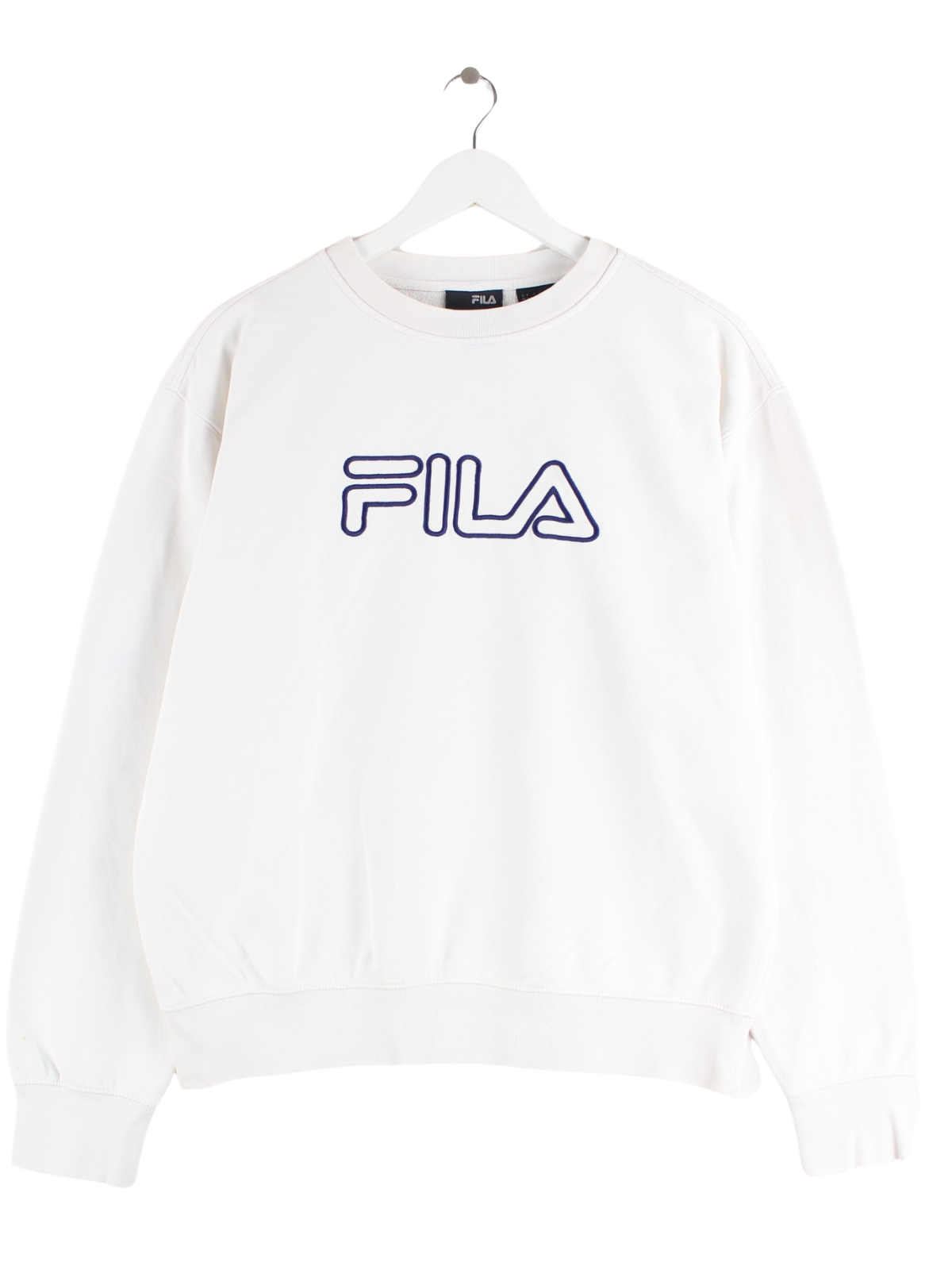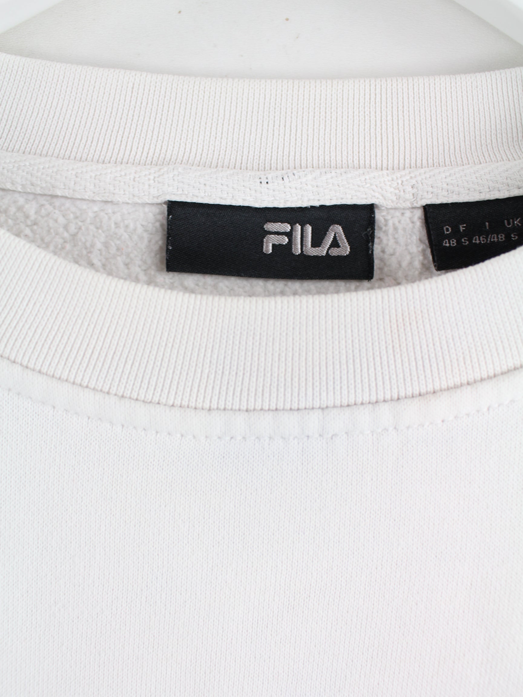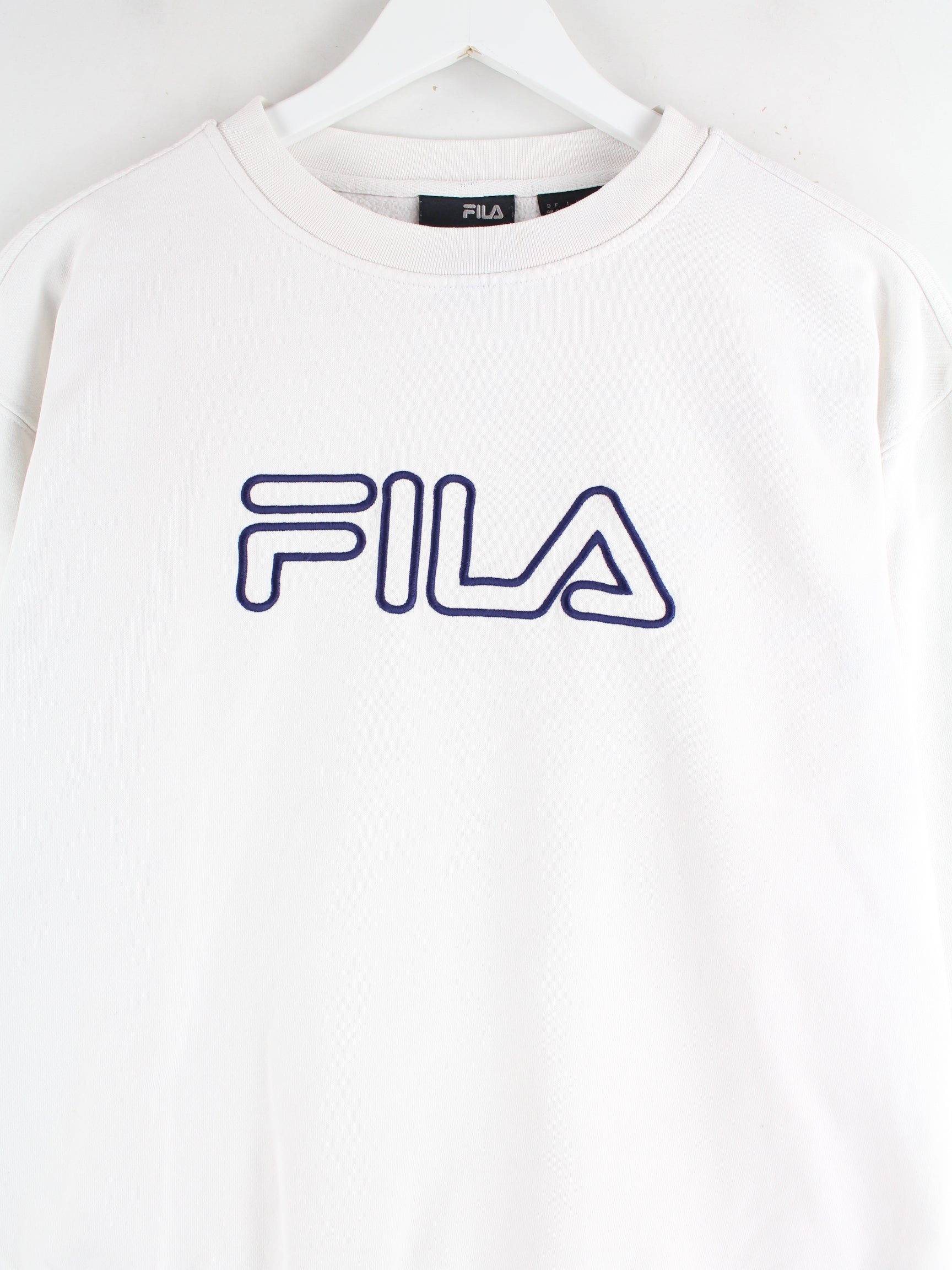 Weißer Sweater mit gesticktem Logo der Marke Fila in Größe S. Er ist aus einer Baumwollmischung angefertigt und in gutem Zustand im Angebot.