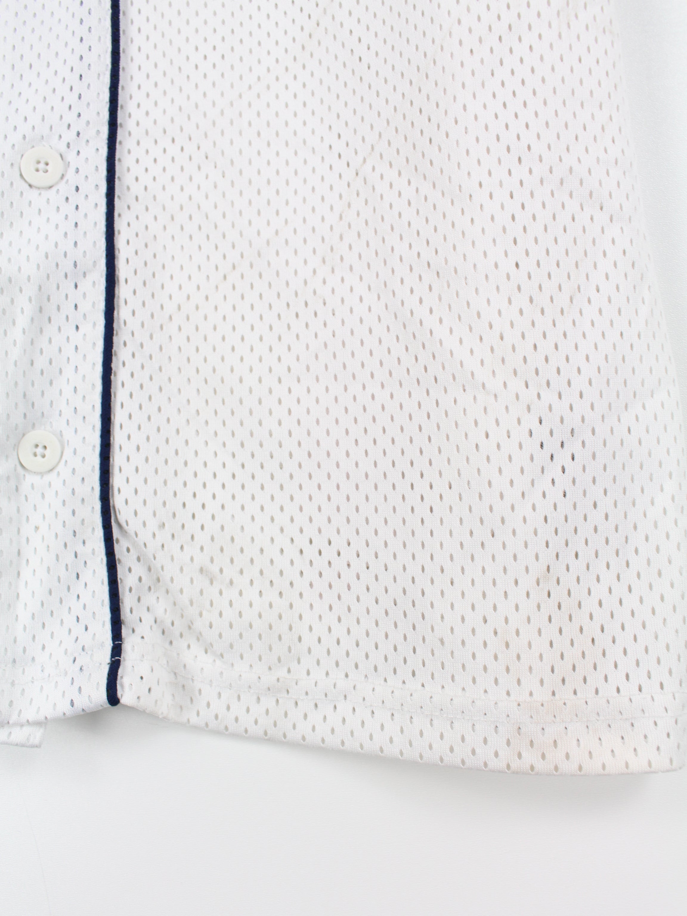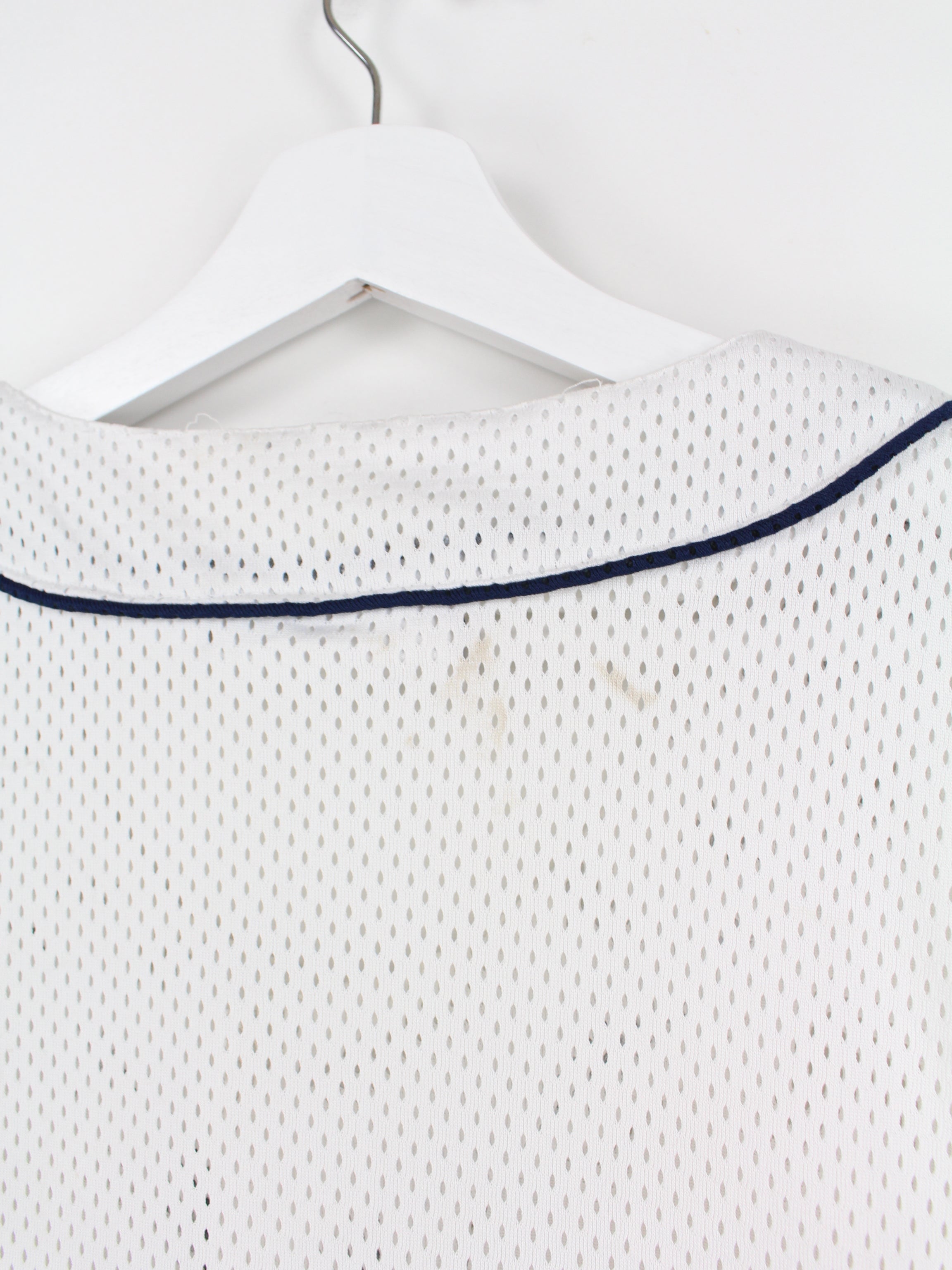 White Fila jersey with large lettering on the front.