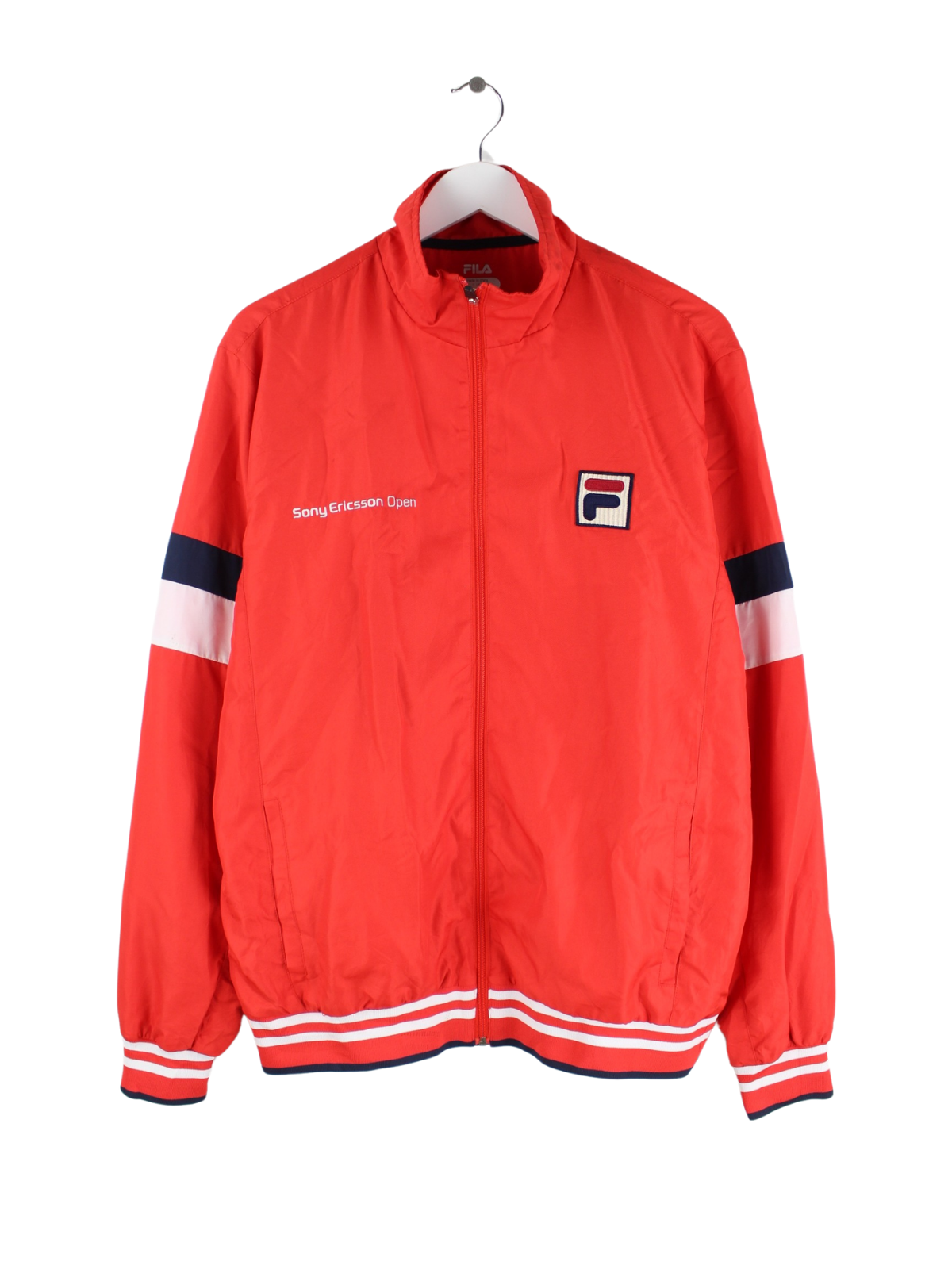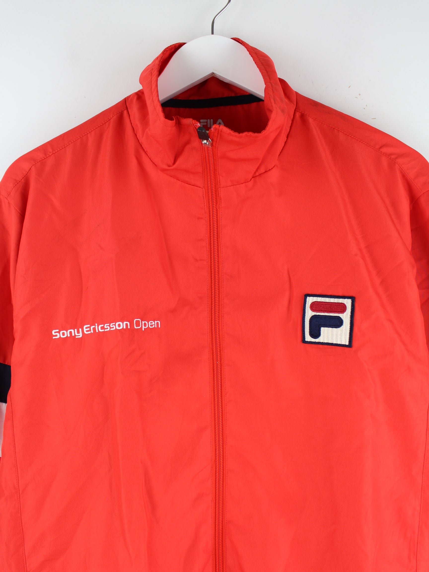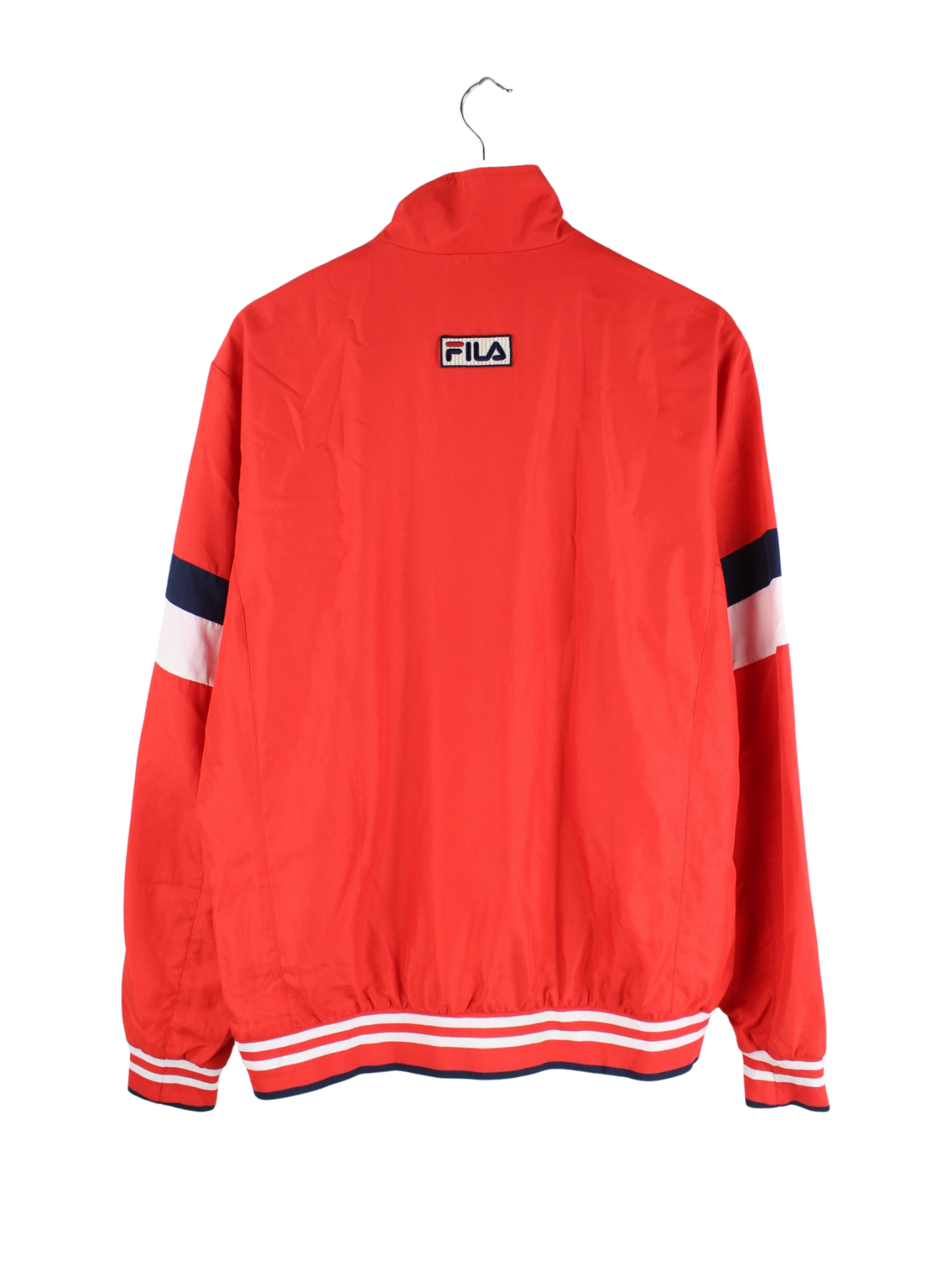 Rote Trainingsjacke aus dem Hause Fila in Größe XL. Sie ist aus Synthetik produziert und in gutem Zustand in Stock.