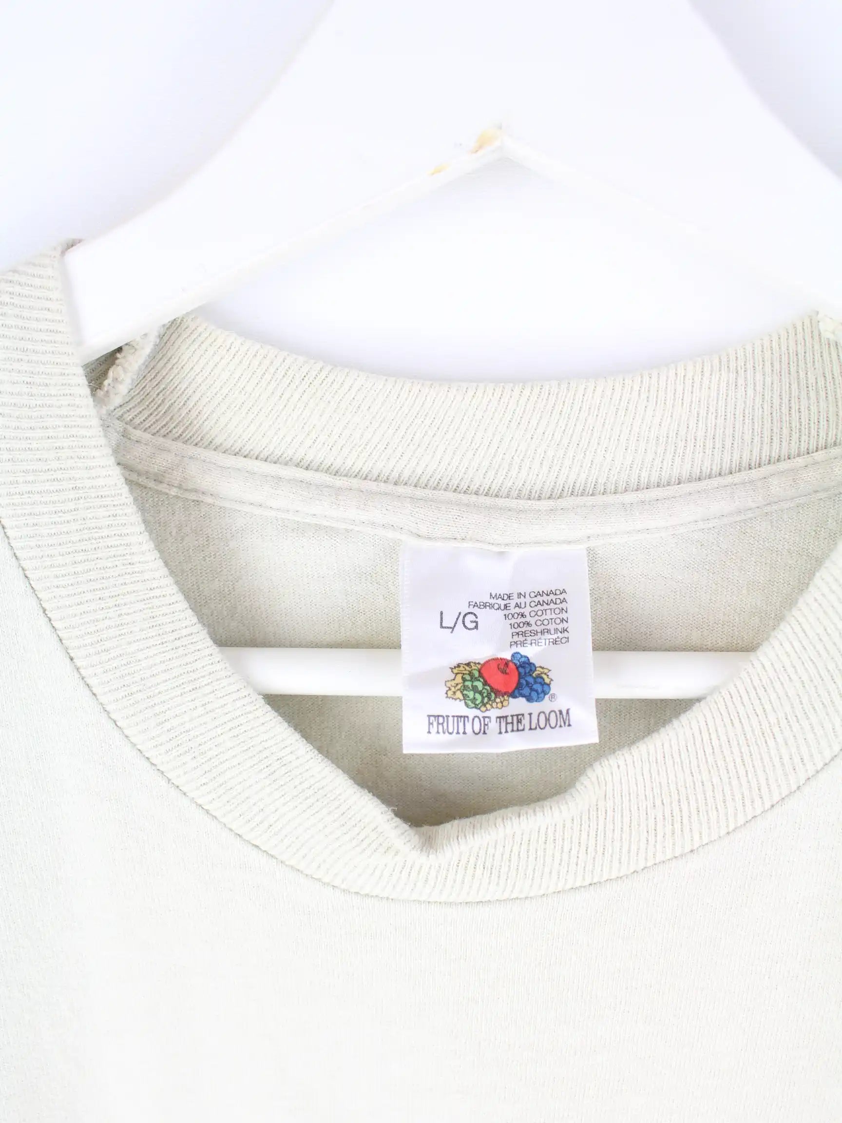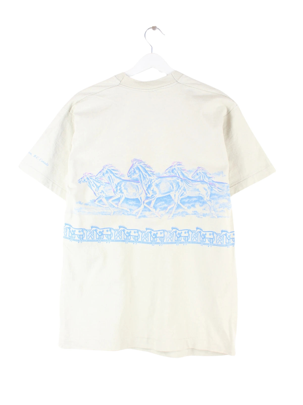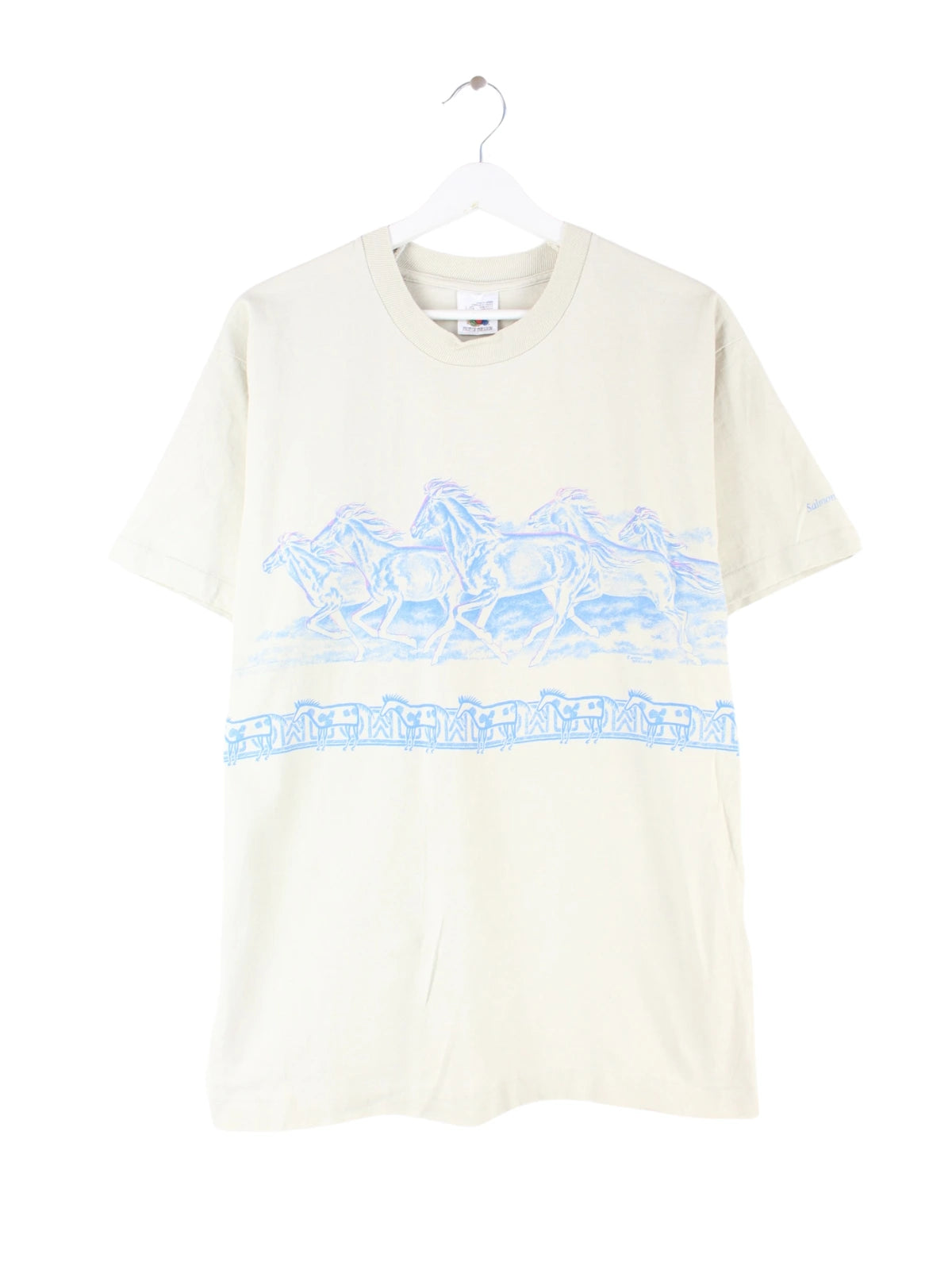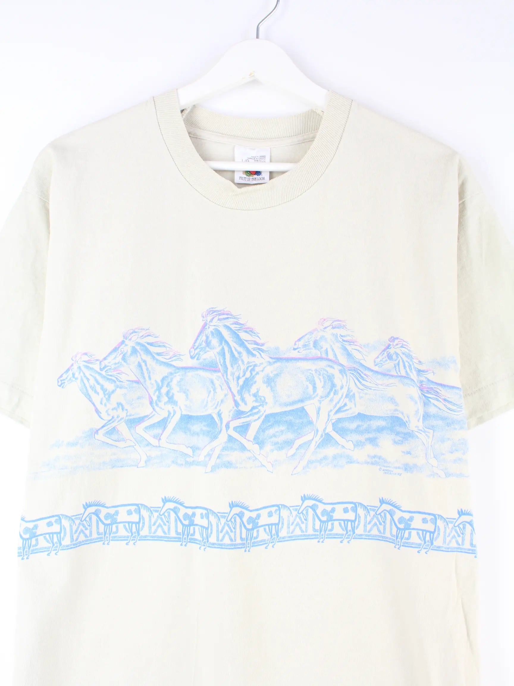 T-Shirt vom Label Fruit of the Loom in Größe L. Es ist aus Baumwolle und in Beige im Angebot. Mit schickem Horse Print.