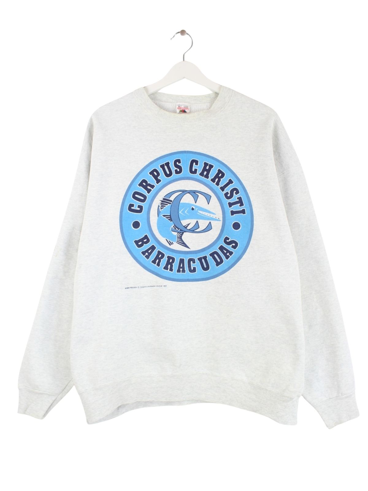 Fruit of the Loom 1994 Vintage Barracudas Print Heavy Sweater Grau XL