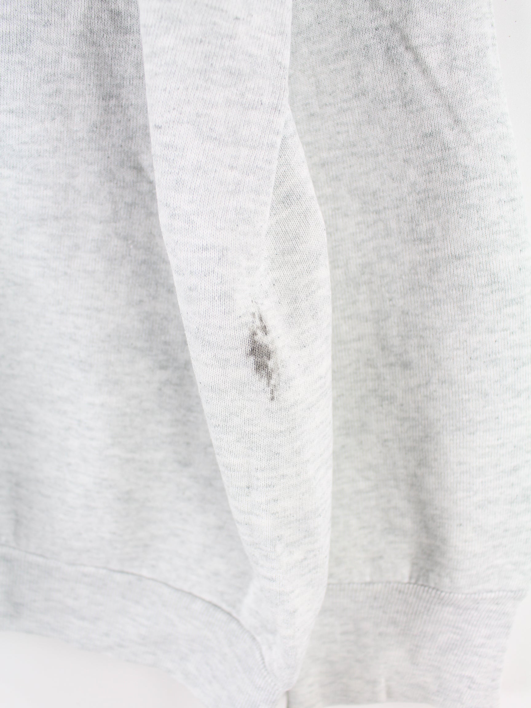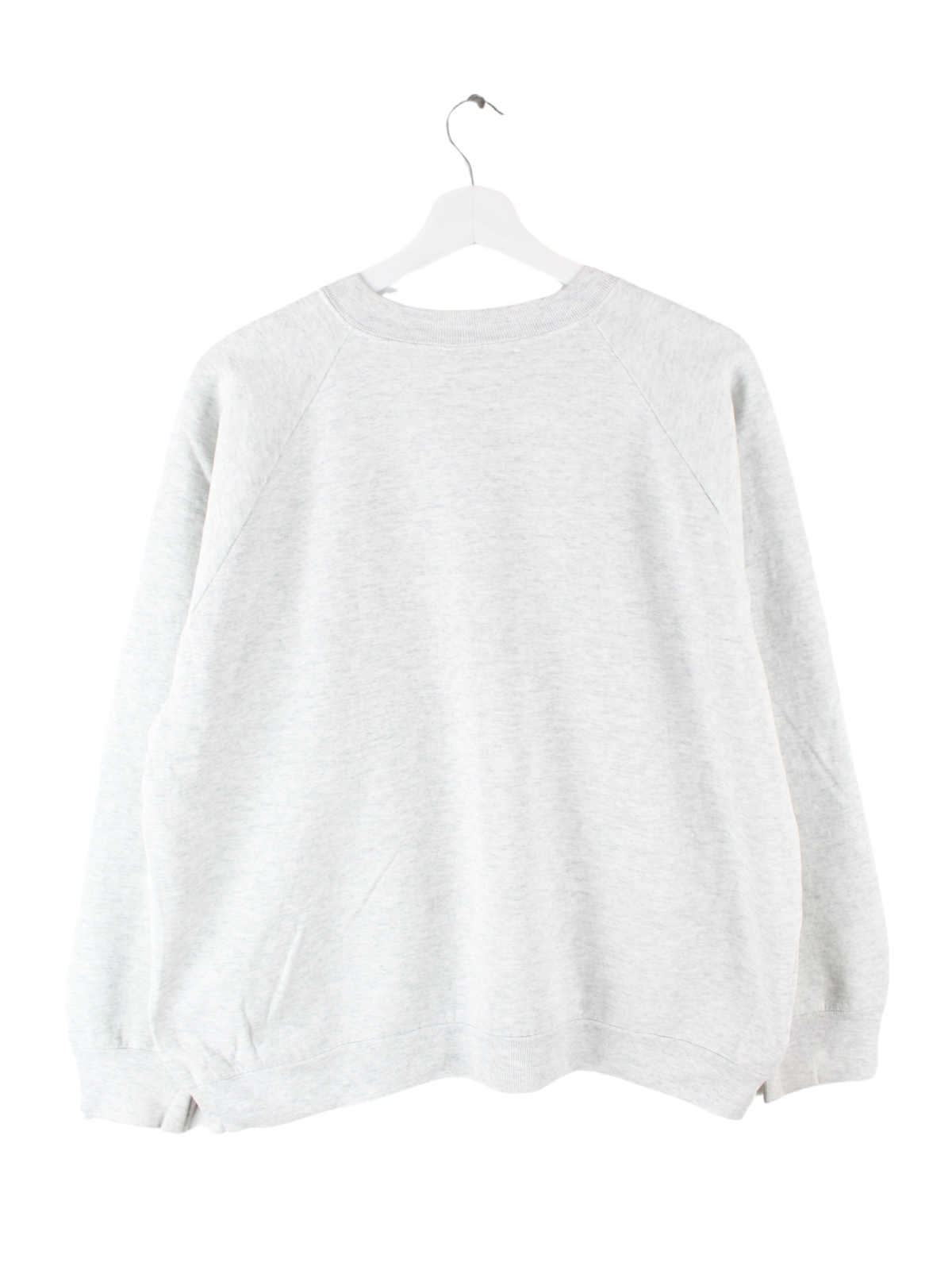 Grauer Sweater vom Label Fruit of the Loom aus den 90'ern in Größe S. Er ist aus einer Baumwollmischung und in gutem Zustand lieferbar. Mit chiquem Christmas Print.