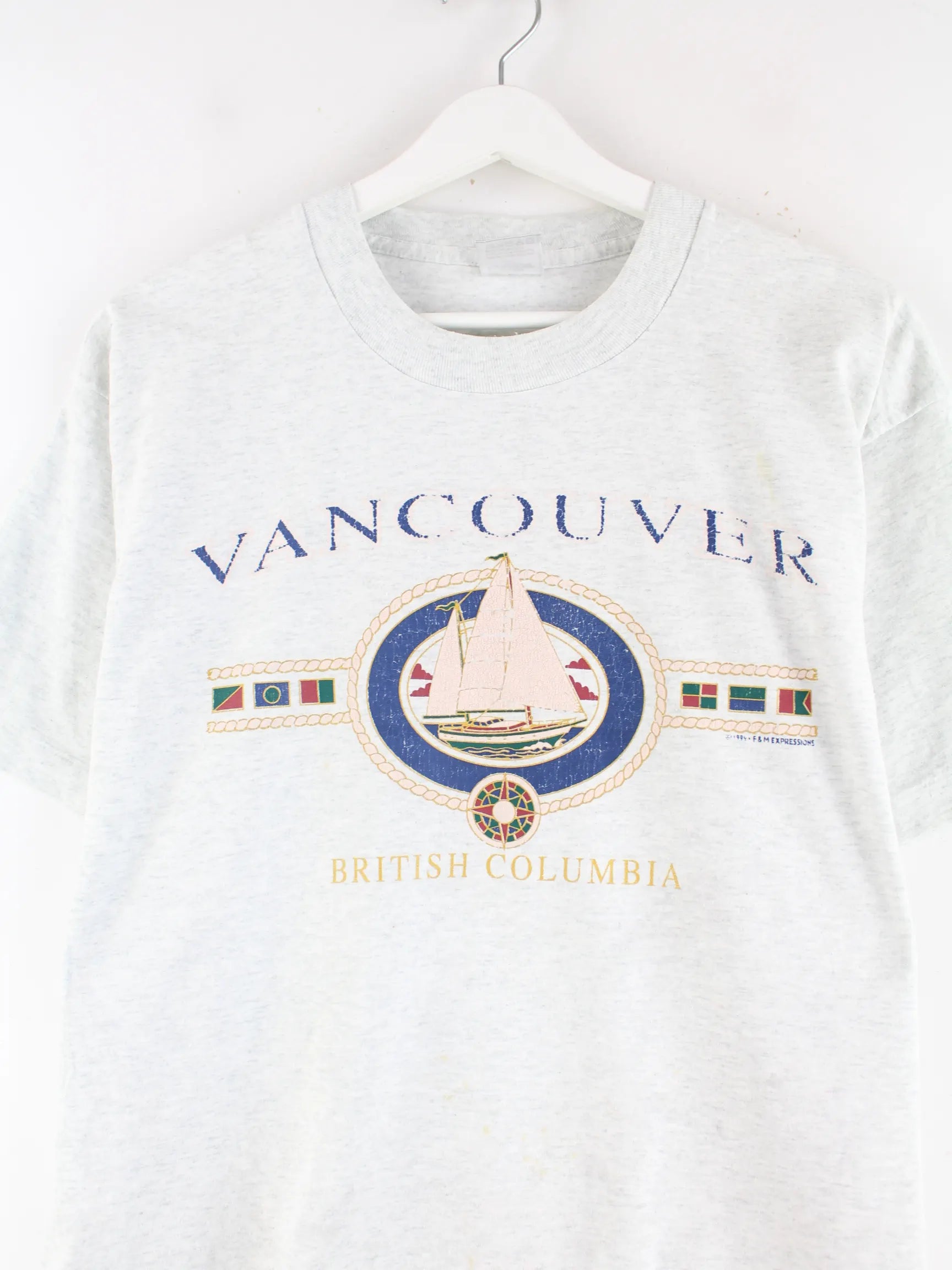 Fruit of the Loom 90s Vintage Vancouver Print Single Stitch T-Shirt Grau L