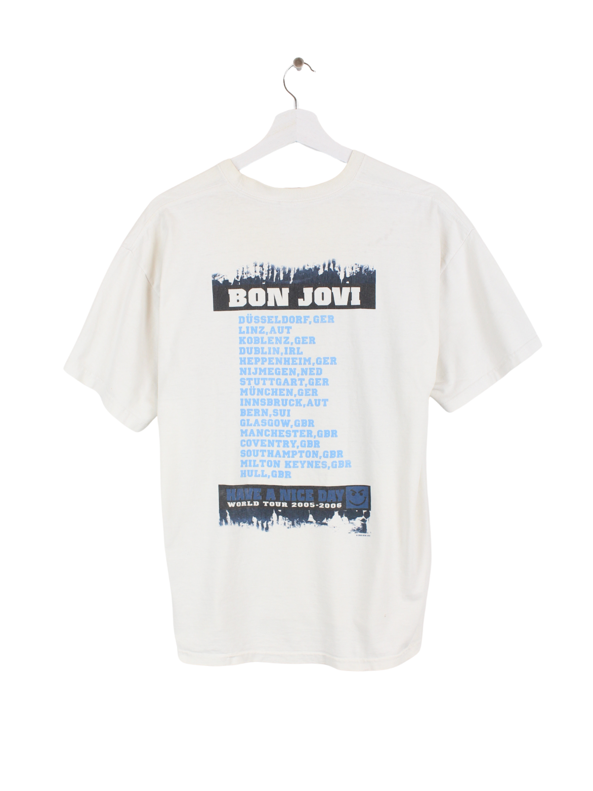 Fruit of the Loom Bon Jovi Print T-Shirt White L