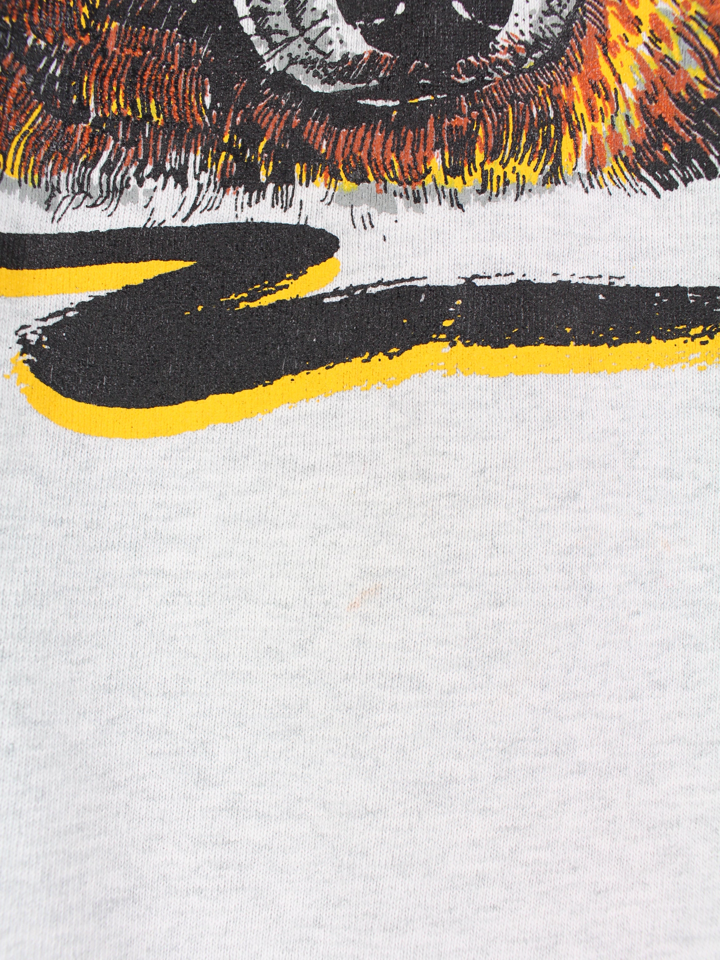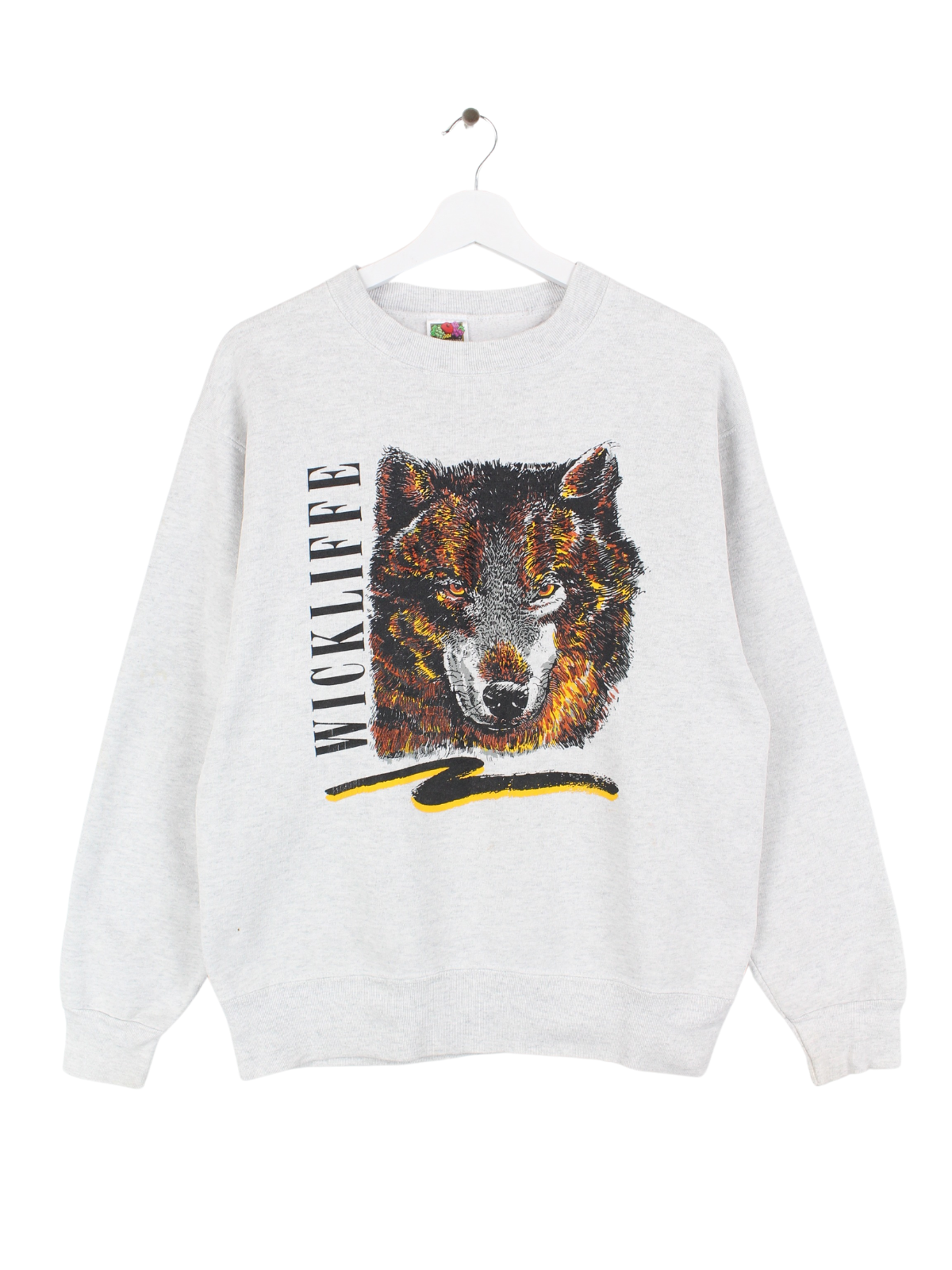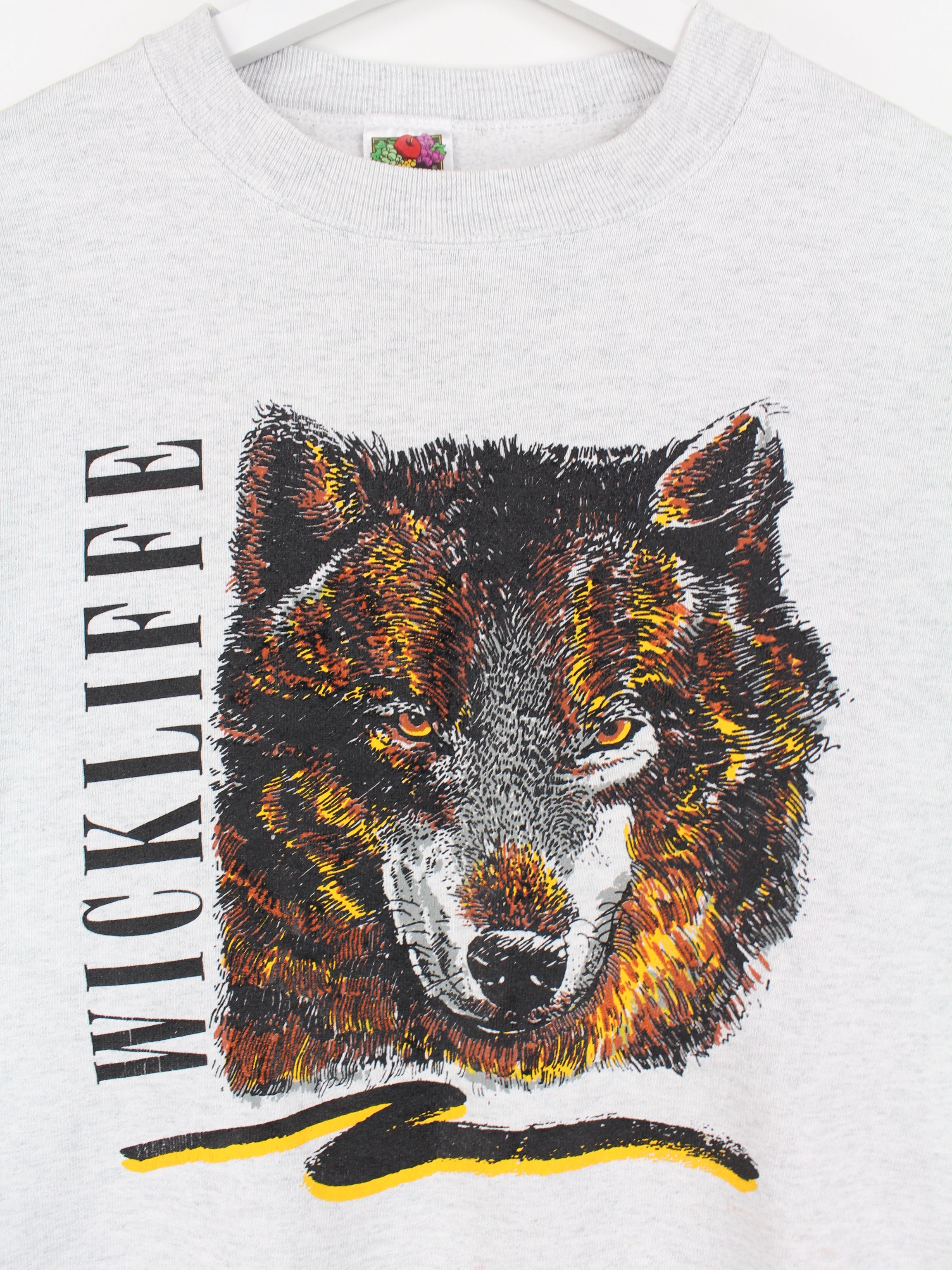 Gray Fruit of the Loom vintage sweater with large wolf print.