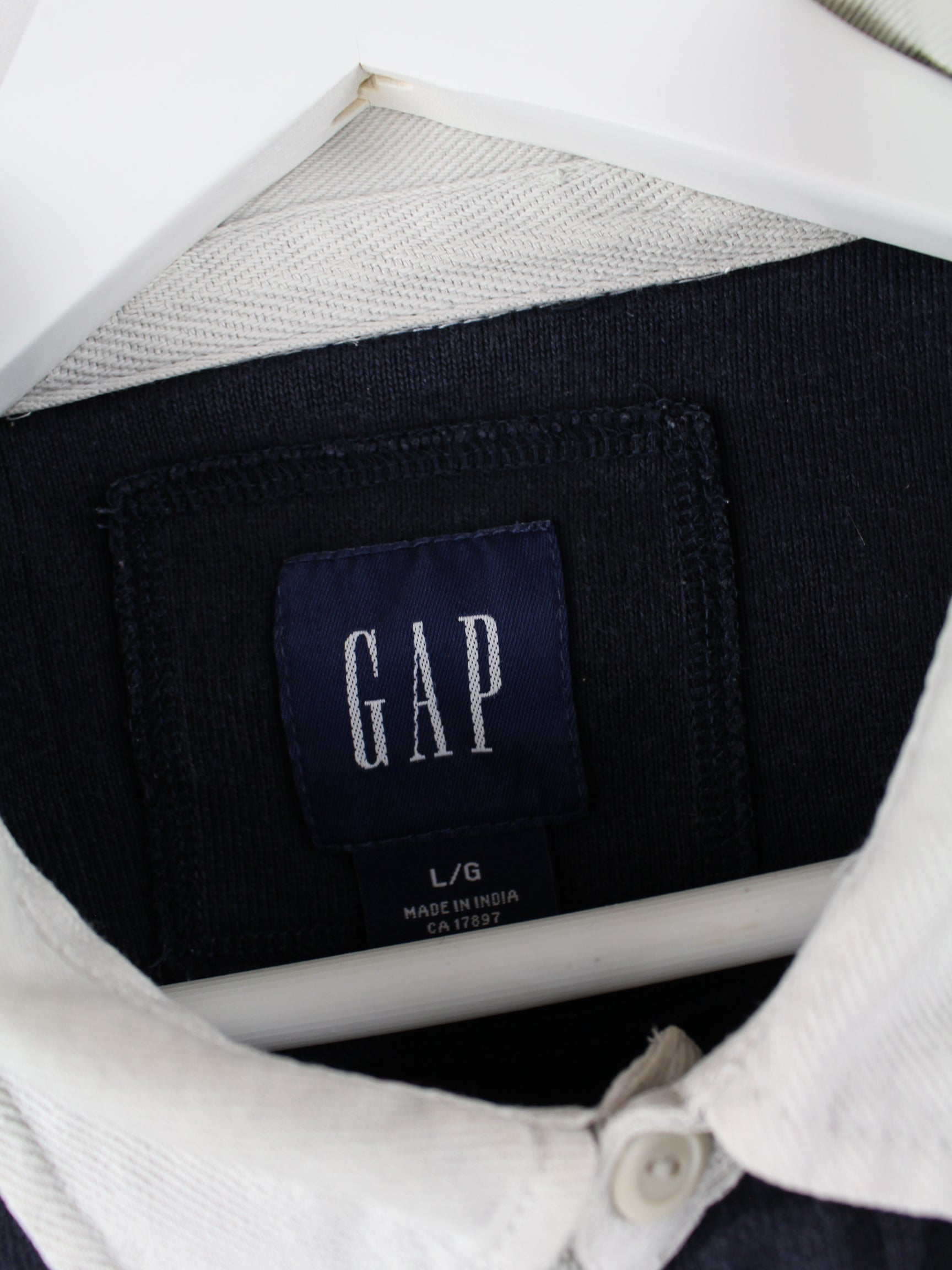 Blaues Poloshirt mit Stickereien des Labels GAP in Größe L. Es ist aus Baumwolle hergestellt und in gutem Zustand bei uns zu bekommen.