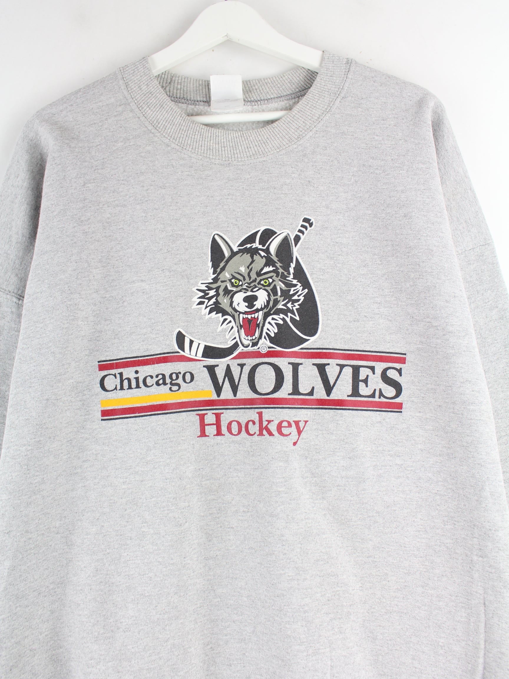 Gildan 00s Chicago Wolves Hockey Print Sweater Gray XXL