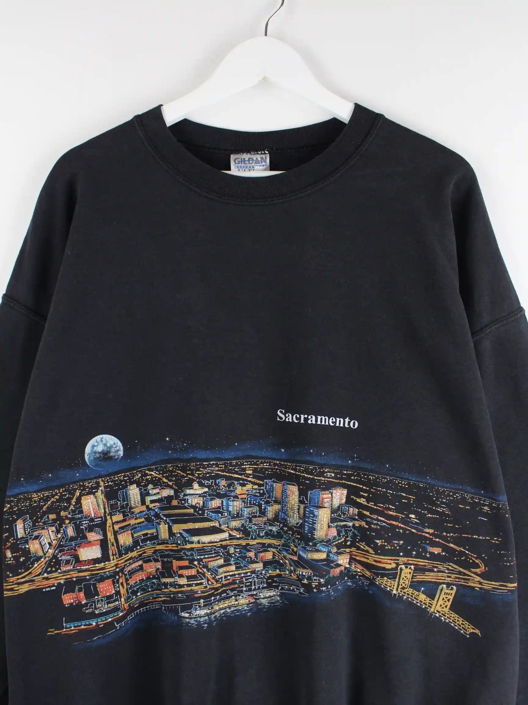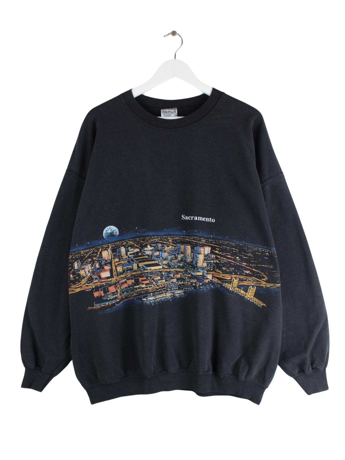 Gildan 00s Sacramento Print Sweater Schwarz XL