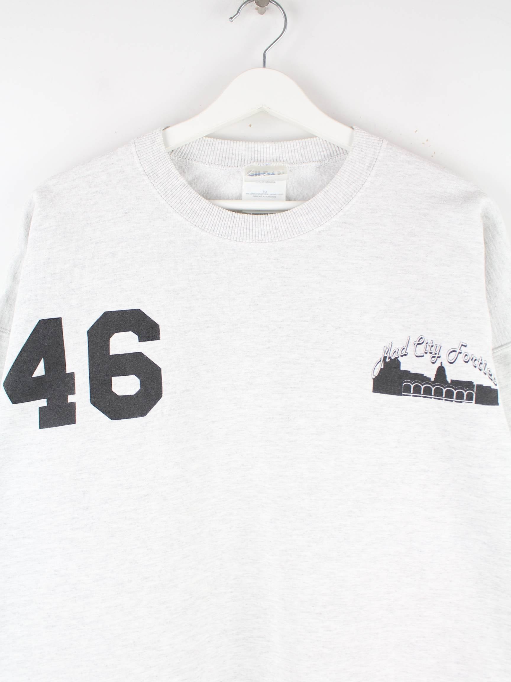 Sweater vom Brand Gildan in Größe XL aus den 90'ern. Er ist aus einer Baumwollmischung angefertigt und in Blau zu bekommen. Mit tollem 90s Print.