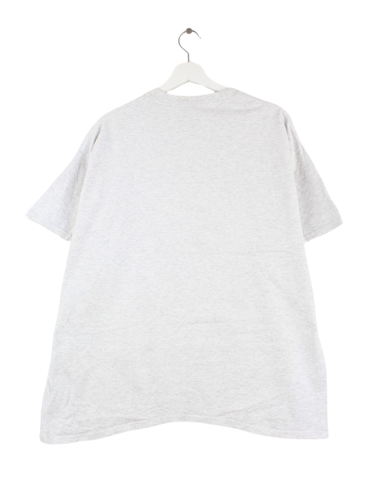 Grey T-shirt from Gildan in size XL. It is made of cotton and is available from us in good condition. With a stylish slugs print.