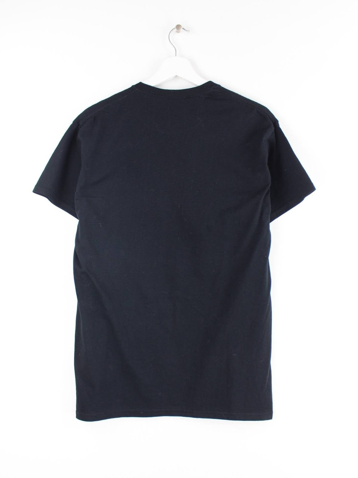Schwarzes T-Shirt des Labels Gildan in Größe M. Es ist aus Baumwolle und in sehr gutem Zustand auf Lager. Mit schönem Devilliers Print.
