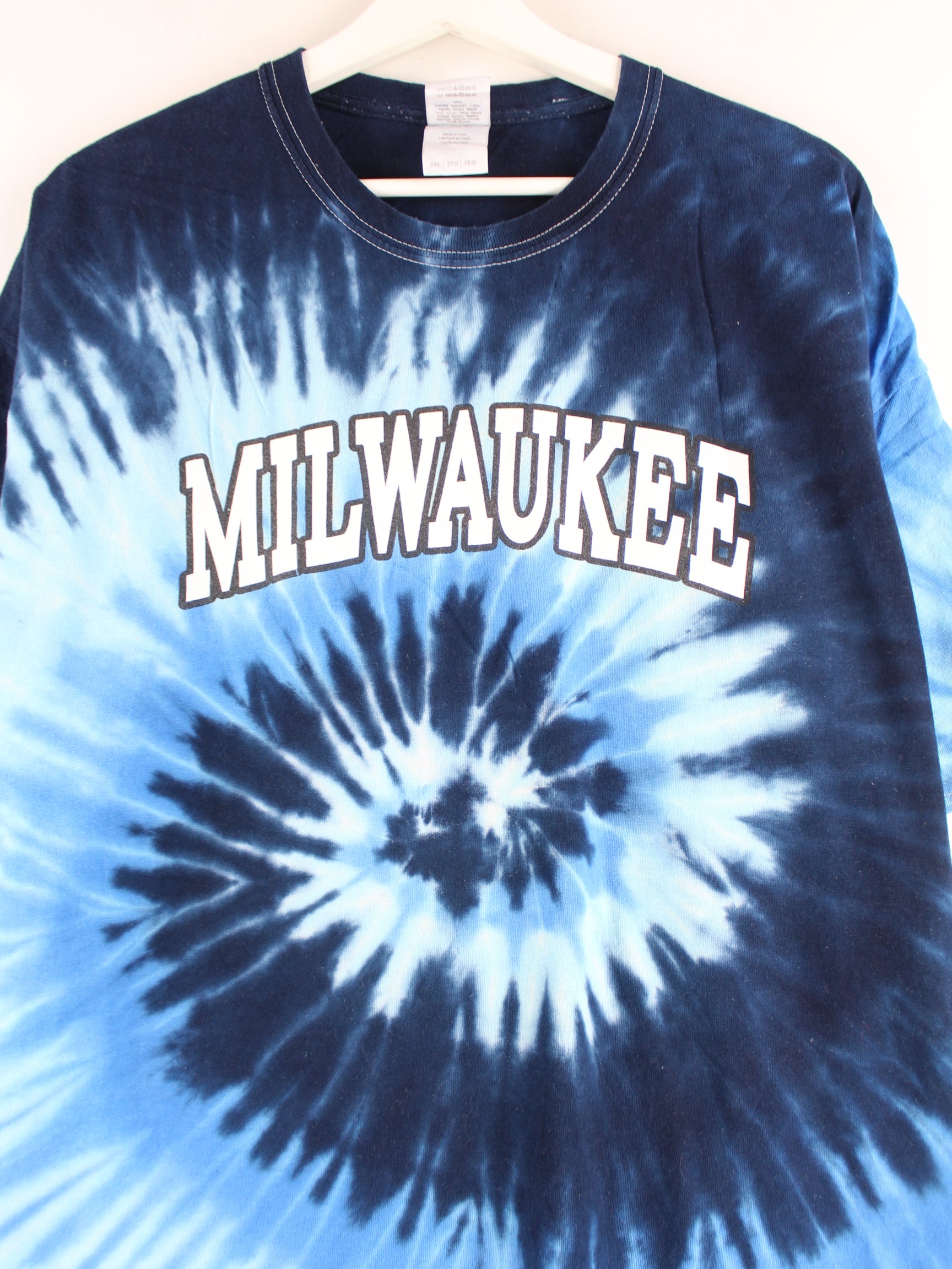 Gildan Milwaukee Print Tie Dye T-Shirt Blue XXL